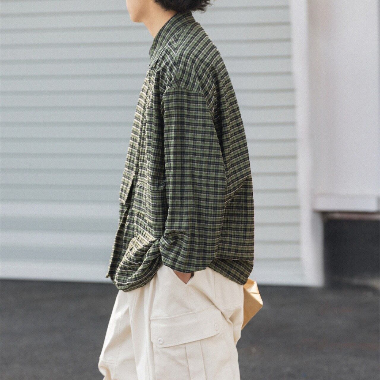 独特な凹凸感とナチュラルな風合いが魅力のチェック柄シャツジャケット。程よい厚みと中綿入りのふんわりとした生地感が、ライトアウターとしても活躍。オーバーサイズのボックスシルエットと、大きめポケットで機能性とデザイン性を両立。