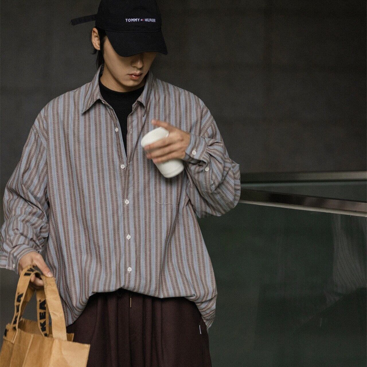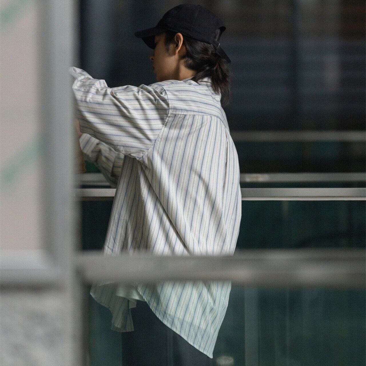 #ストライプシャツ #長袖シャツ #オーバーサイズ #刺繍デザイン #ルーズフィット #cityboyootd #NOEARS #gate #レイヤードスタイル #ユニセックスファッション #“TRUE FORM”