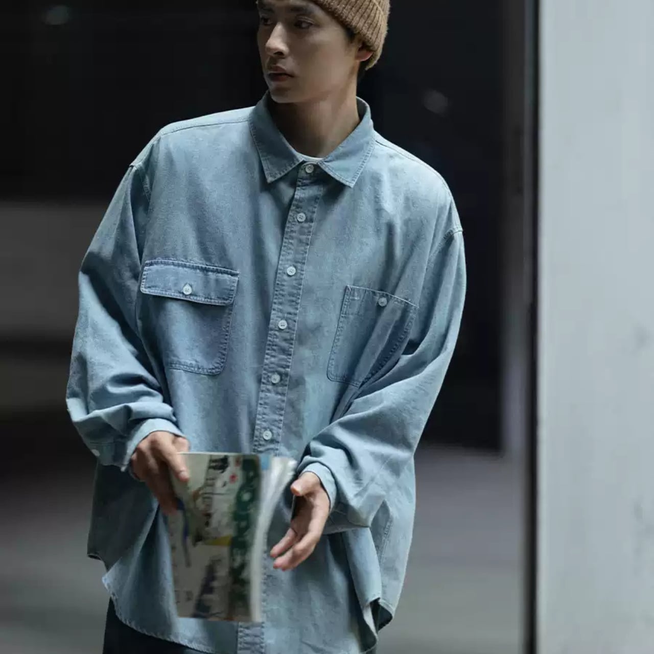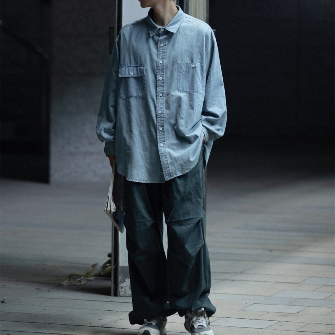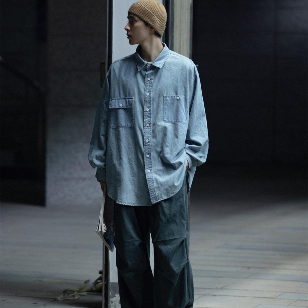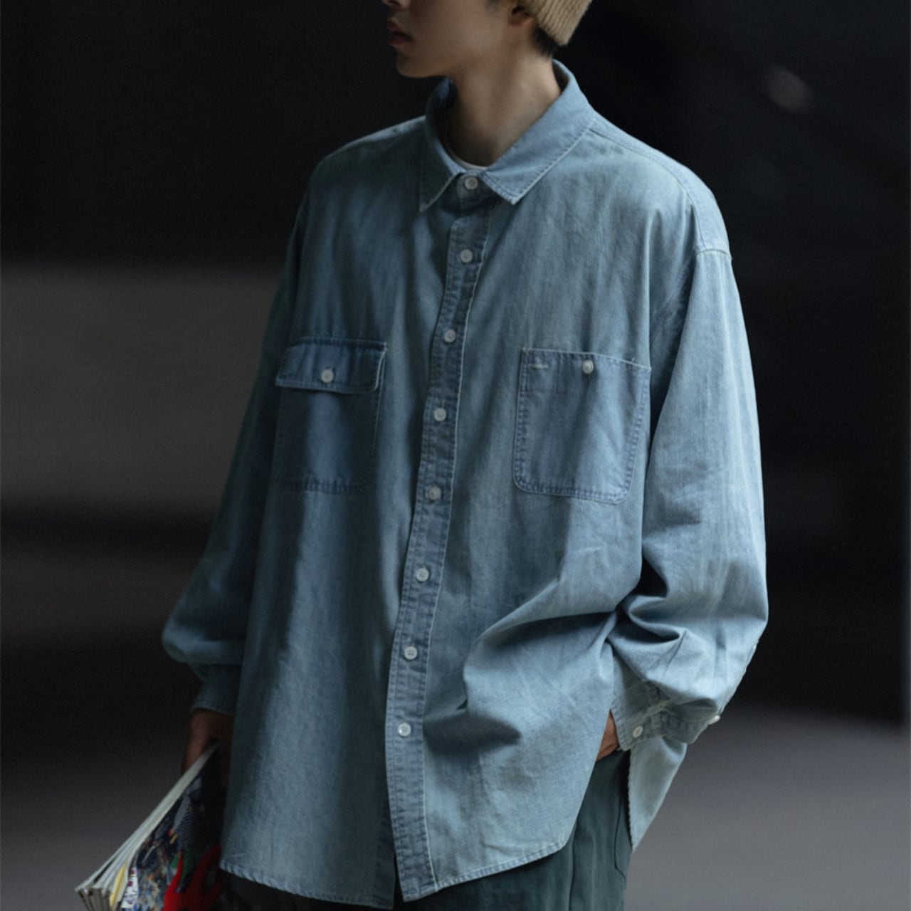 都会的なルーズシルエットとヴィンテージライクな風合いを兼ね備えたデニムシャツ。