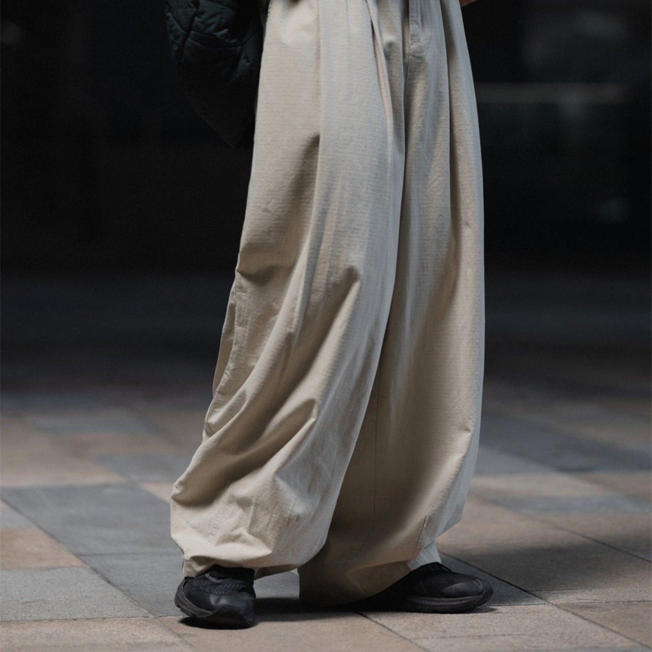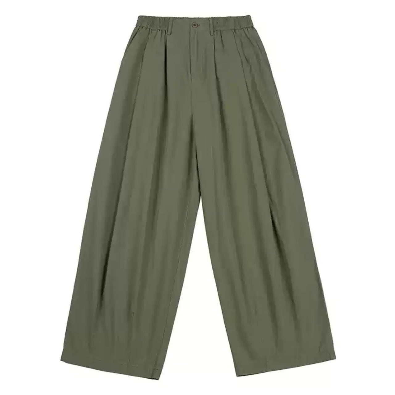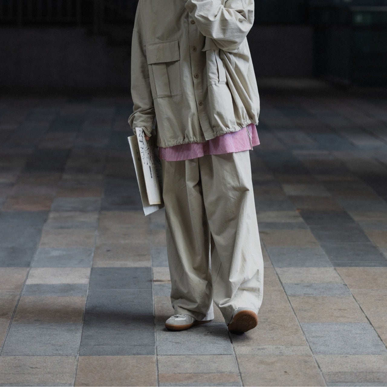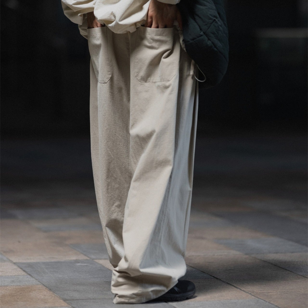 ナチュラルな色合いとボリュームのあるシルエットが特徴的なワイドパンツ。太めでゆったりとしたラインがこなれ感を演出しつつ、柔らかなコットン素材で快適な穿き心地を実現。シンプルなトップスとの相性も抜群で、春先や秋口のコーデにぴったりな1本です。ウエストはゴム仕様で、体型問わずリラックスして着用可能です。