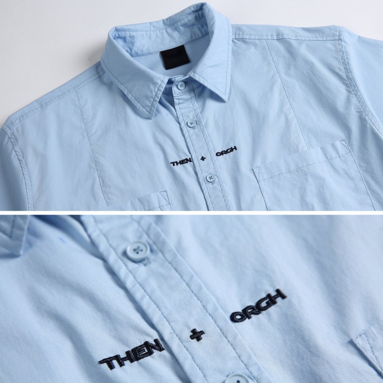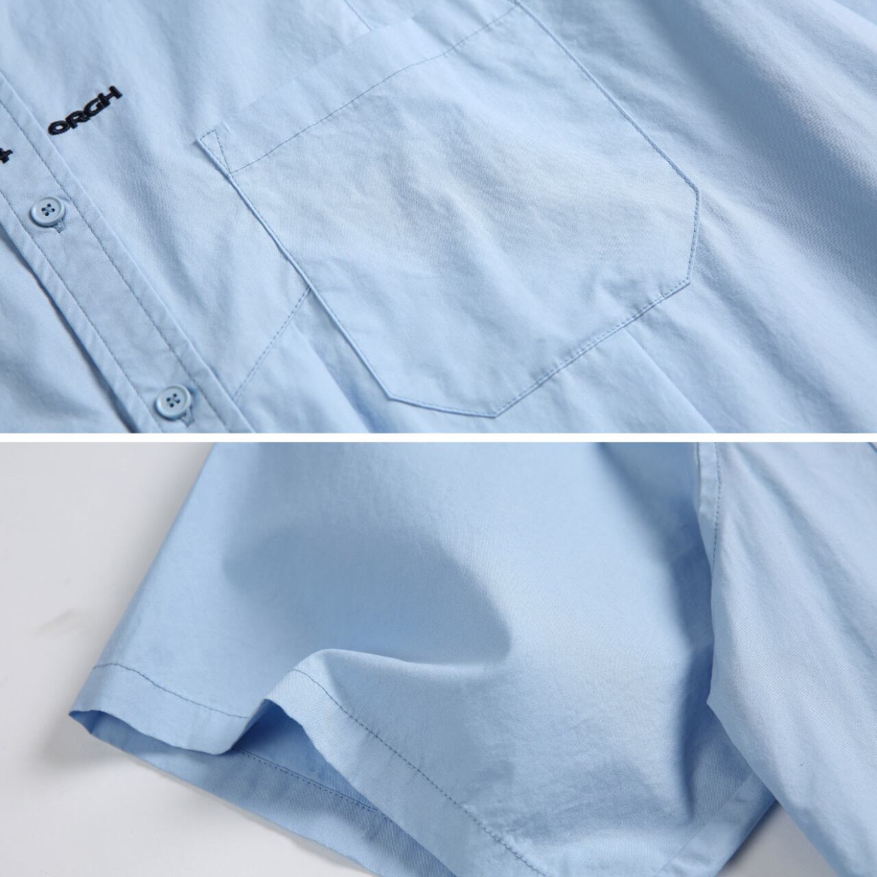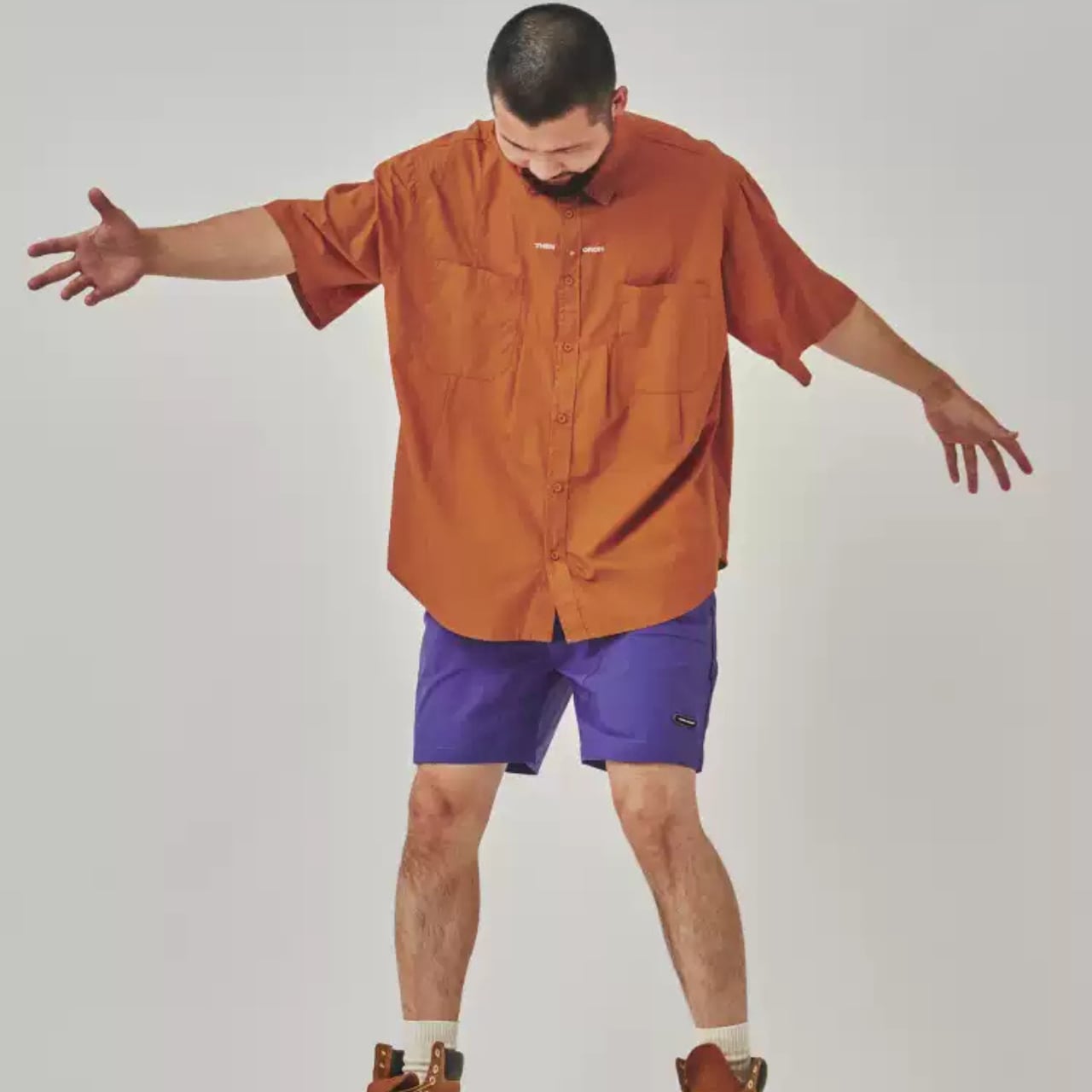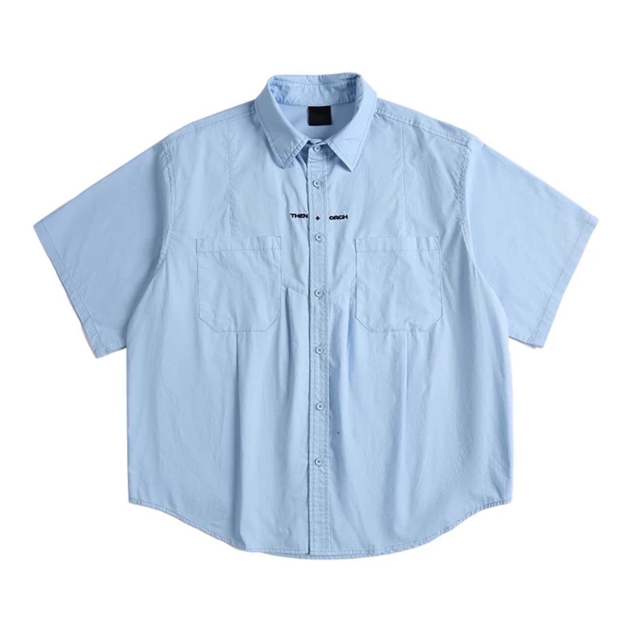 ゆったりとしたシルエットのショートスリーブワークシャツ。胸元にはロゴ刺繍が入り、カジュアルかつスタイリッシュなデザイン。通気性と着心地の良い100%コットン素材使用。
