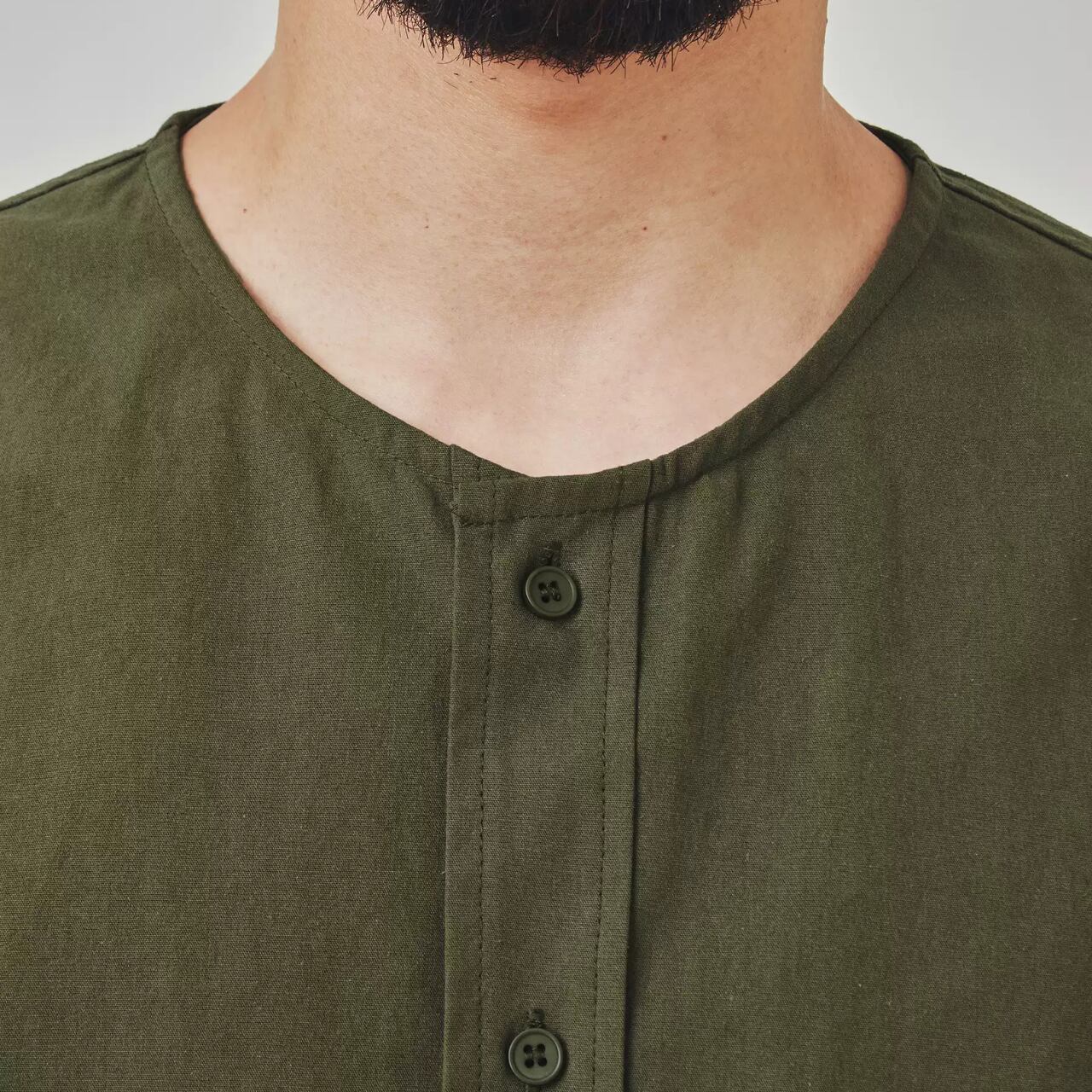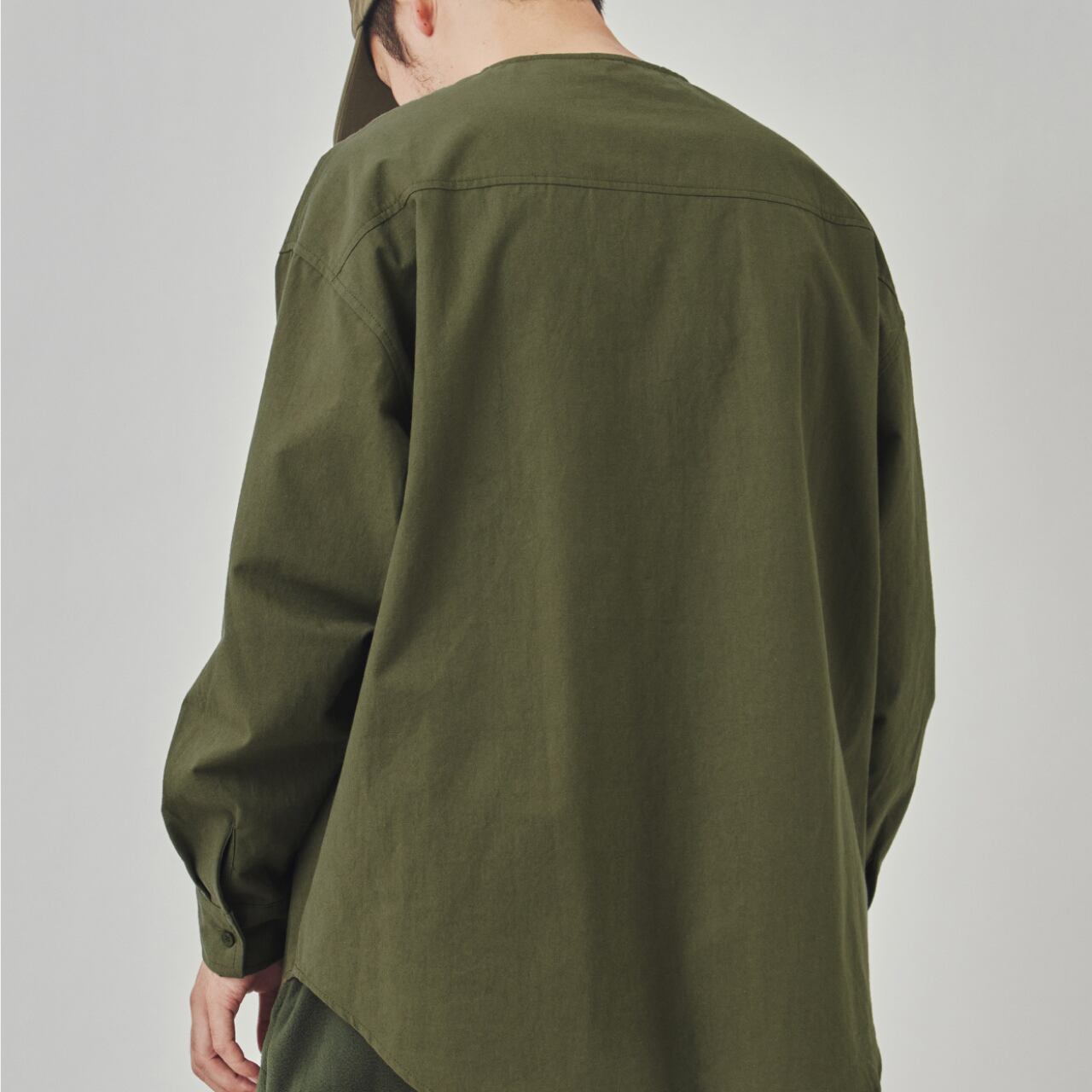 シンプルながらも洗練されたデザインのバンドカラーシャツ。肩幅・身幅ともにゆとりを持たせたリラックスフィットで、裾はラウンドカット仕様。アウターとしてもインナーとしても使いやすい万能アイテム。