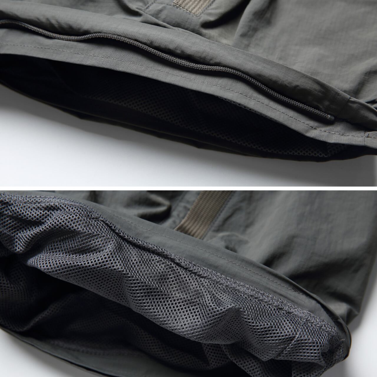 軽量なリップストップ素材を使用し、耐久性と快適な履き心地を両立。
