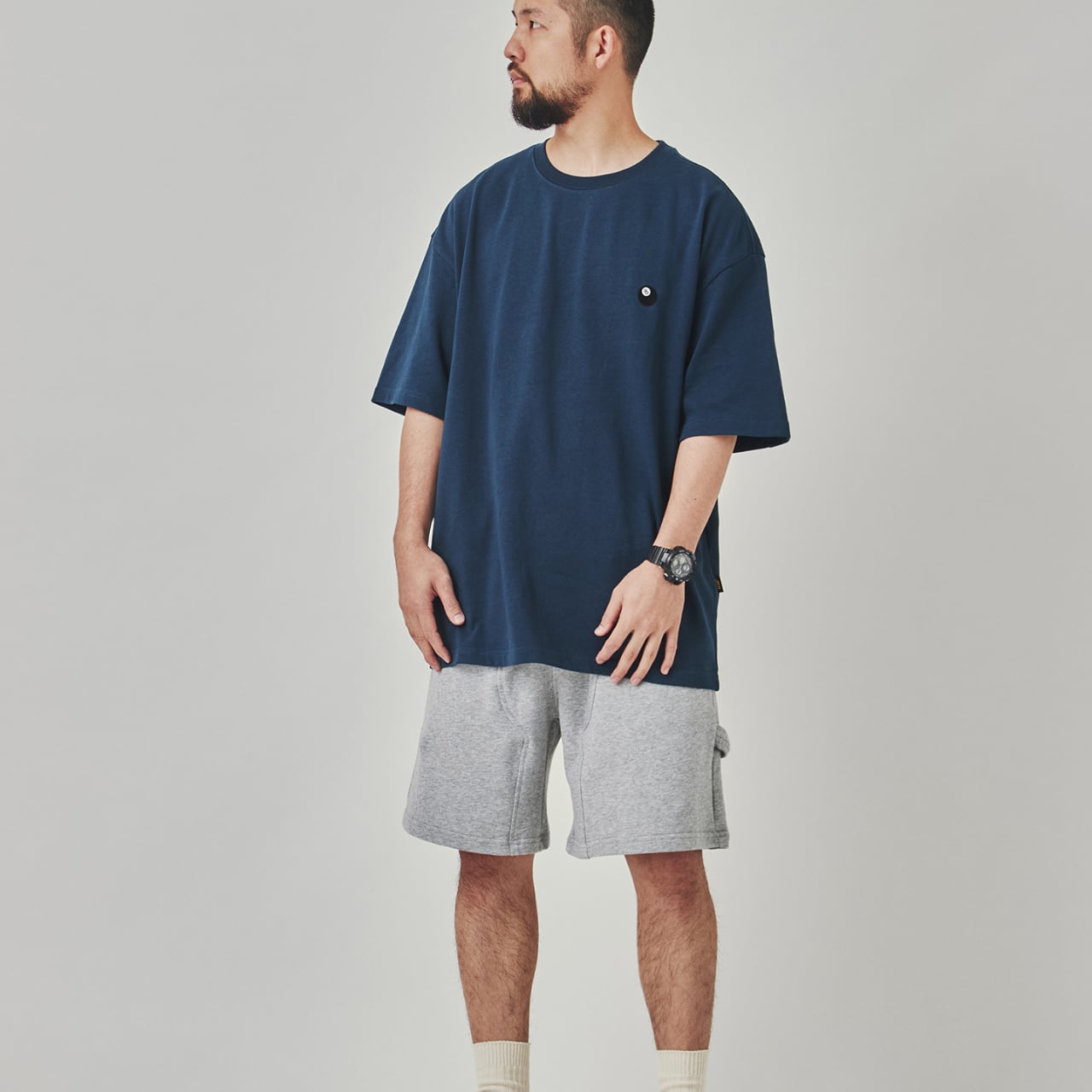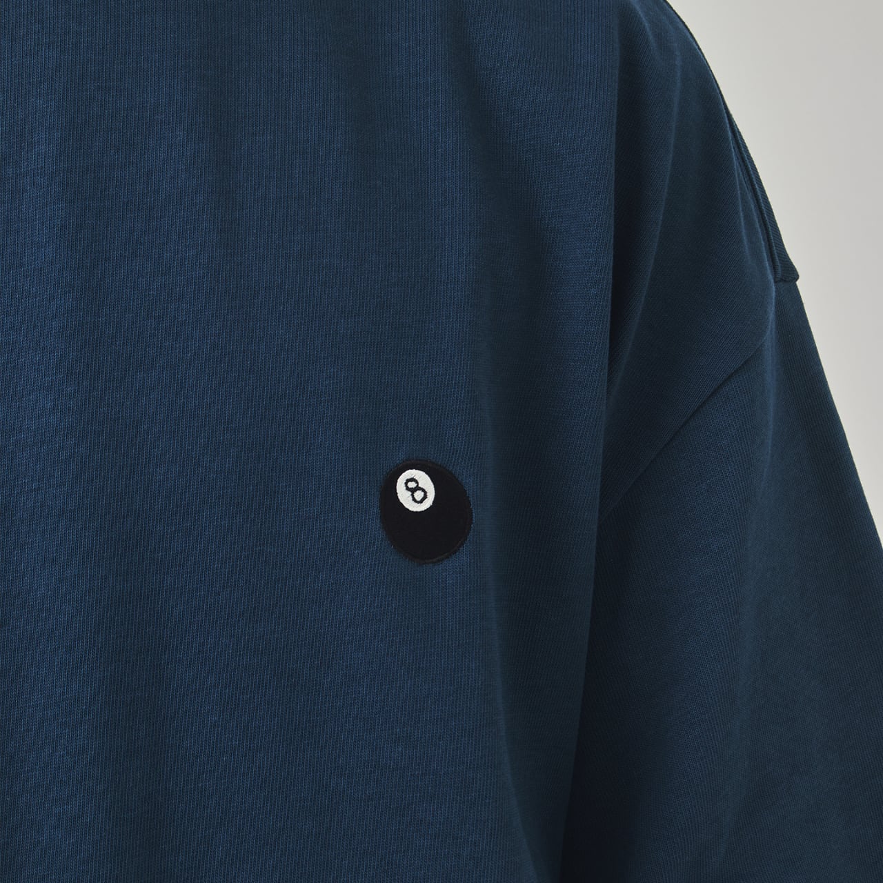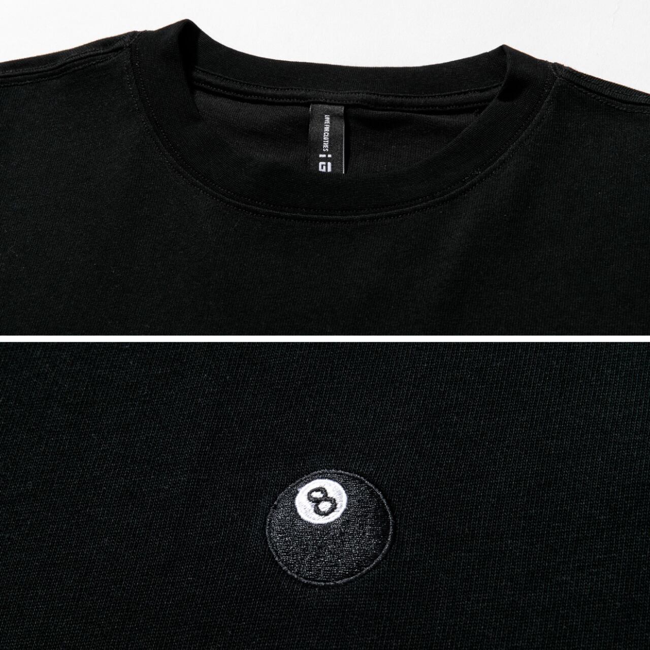 胸元にさりげなくあしらわれたビリヤードの「8ボール」アイコン刺繍がポイントのオーバーサイズTシャツ。