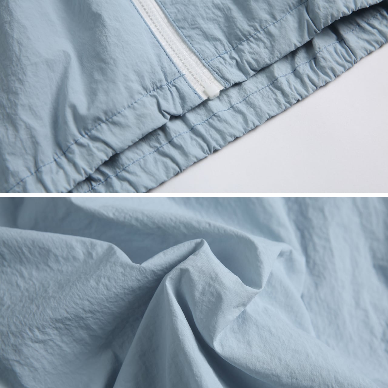 ゆとりのあるサイズ感で、動きやすさと快適さを両立。コンパクトに収納しやすく、旅先や急な天候変化にも便利な一着です。