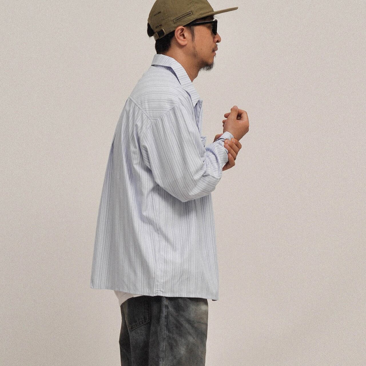 クラシックなストライプ柄を現代的にアレンジした、リラックス感のあるルーズシルエットで、一枚着としてもレイヤードにも対応可能。