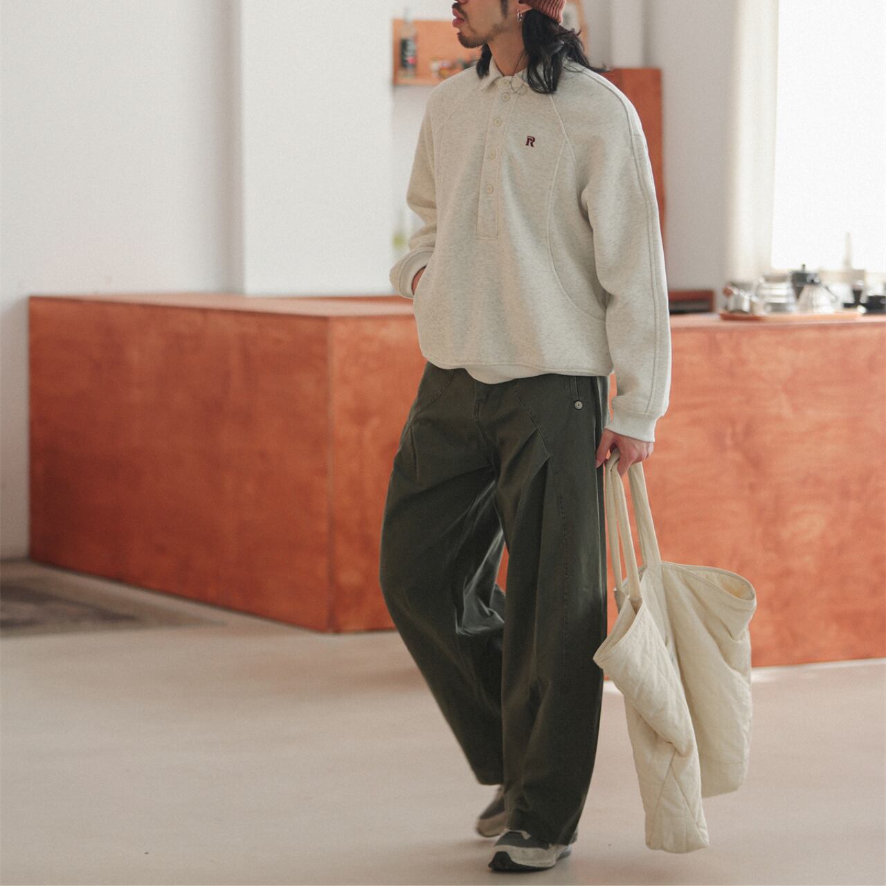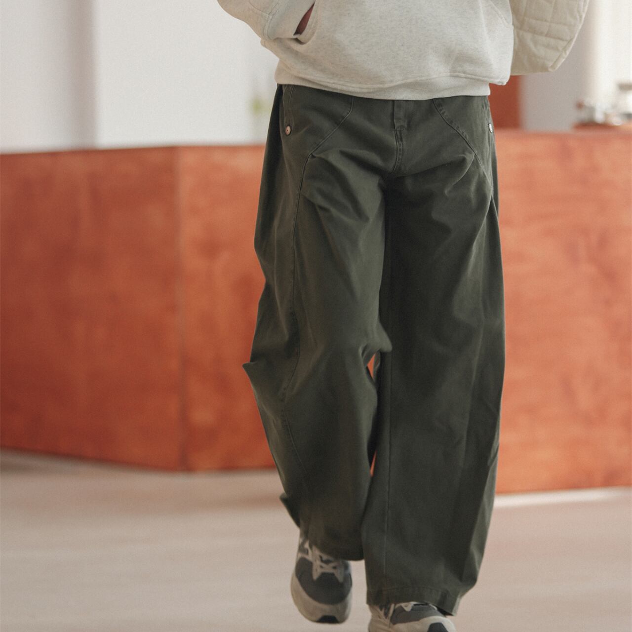 ハリ感のあるコットン素材を使用し、タフでありながら動きやすい穿き心地。