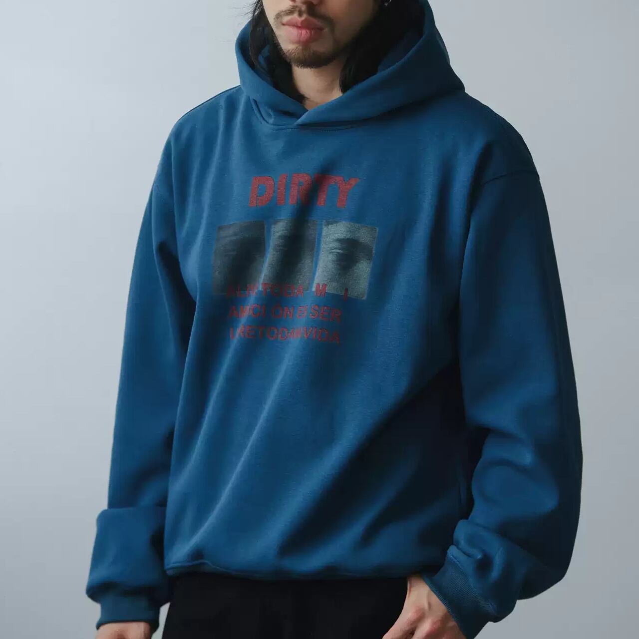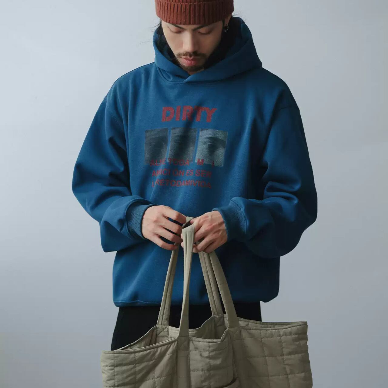 フロントに大胆なグラフィックと「DIRTY」のレタリングを施した存在感抜群のフーディ。