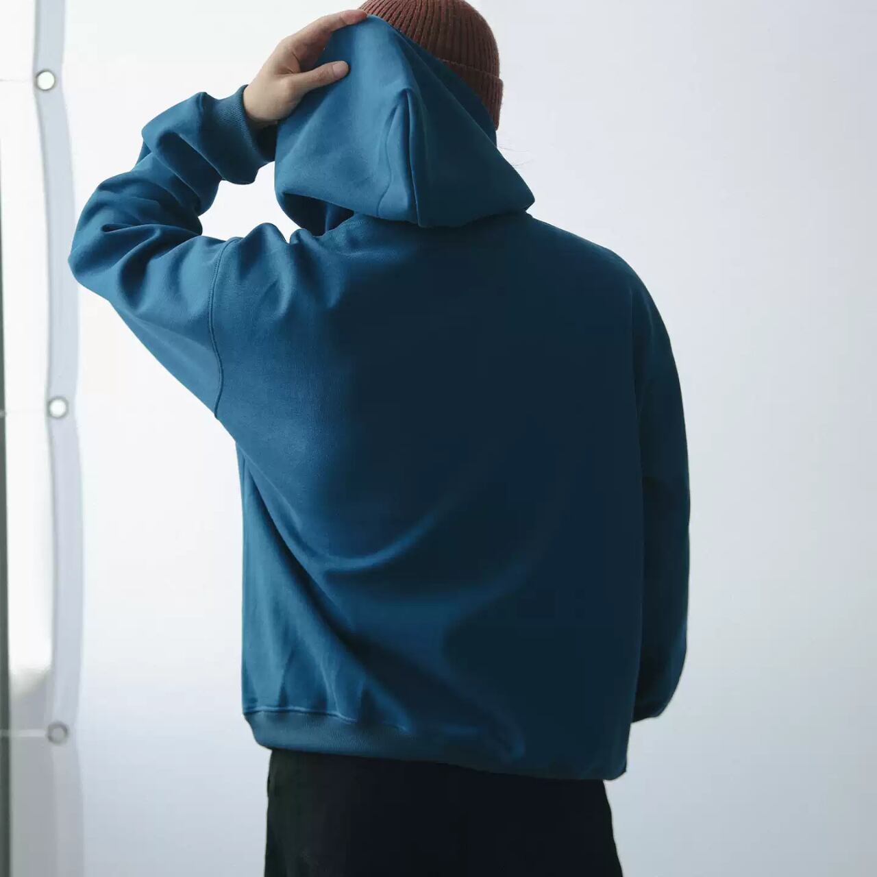 肉厚でハリのある生地感ながら柔らかく、ストリートスタイルに映える一枚です。