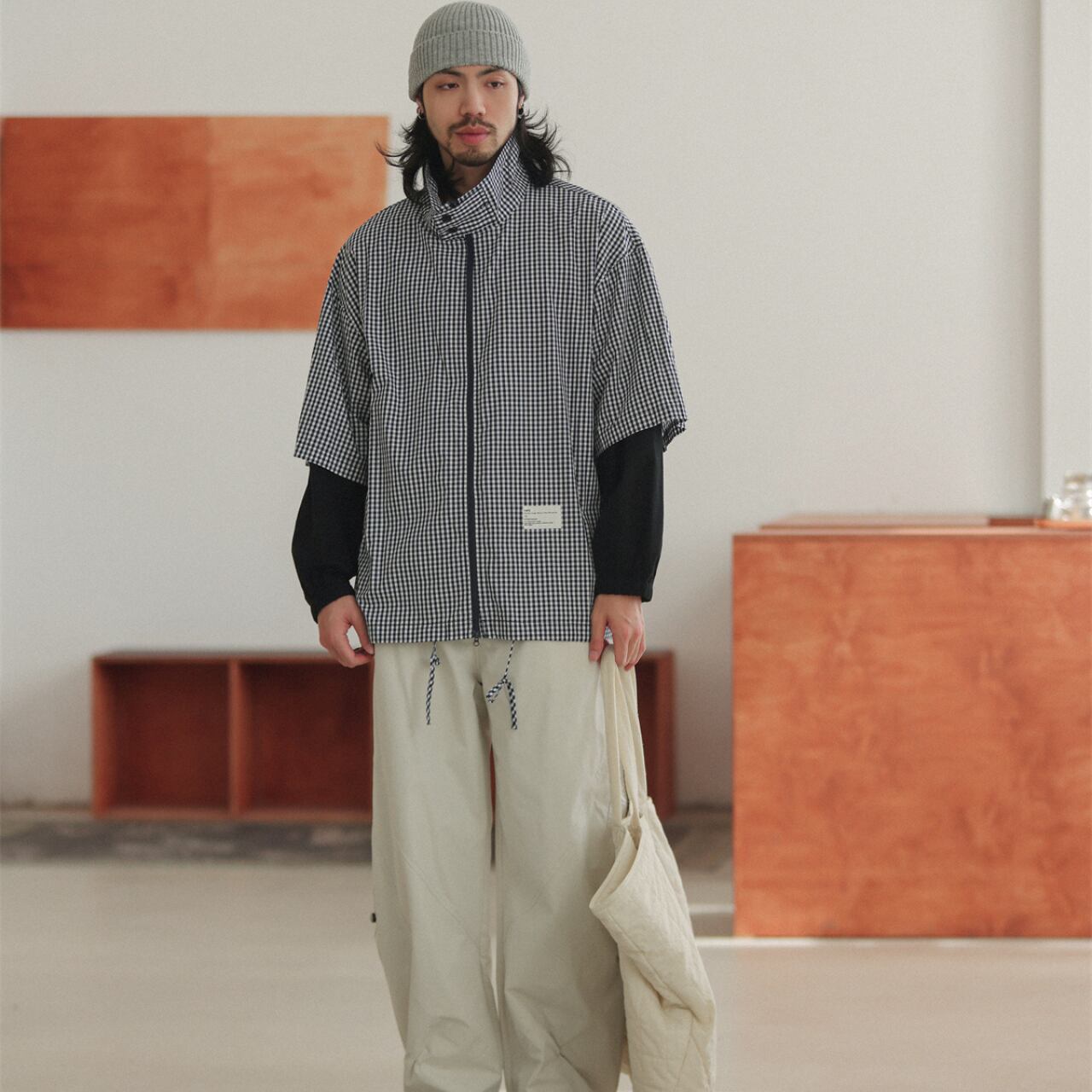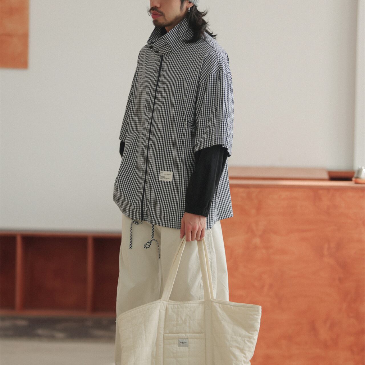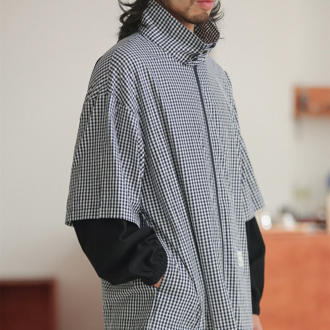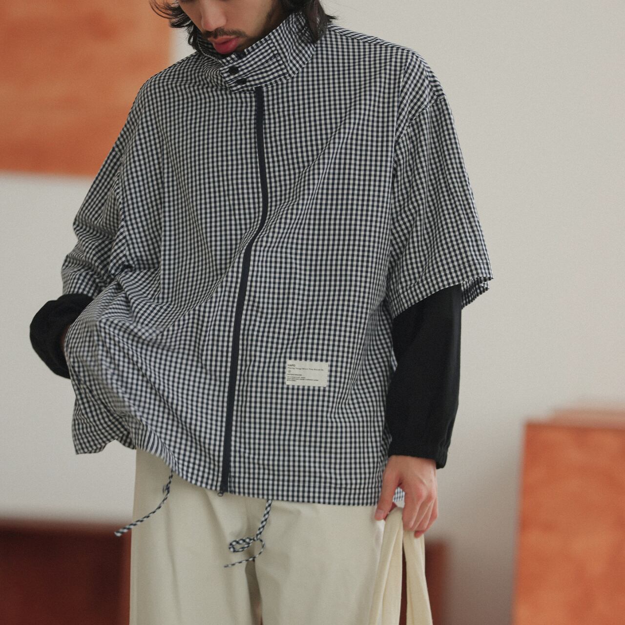 ギンガムチェック柄が印象的なハーフスリーブジャケット。