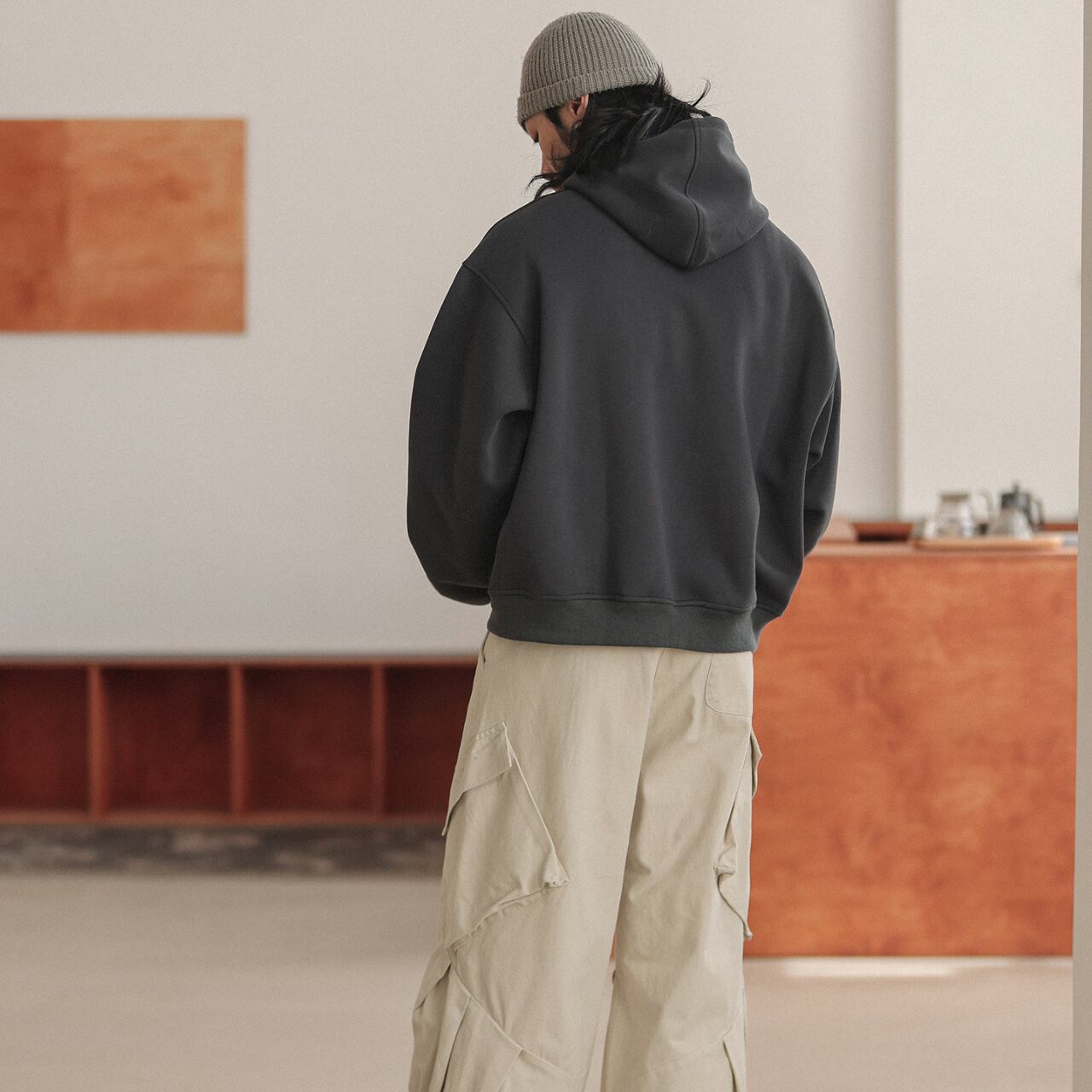 モノトーンで洗練されたカラー展開は、どんなスタイルにも合わせやすい万能フーディーです。