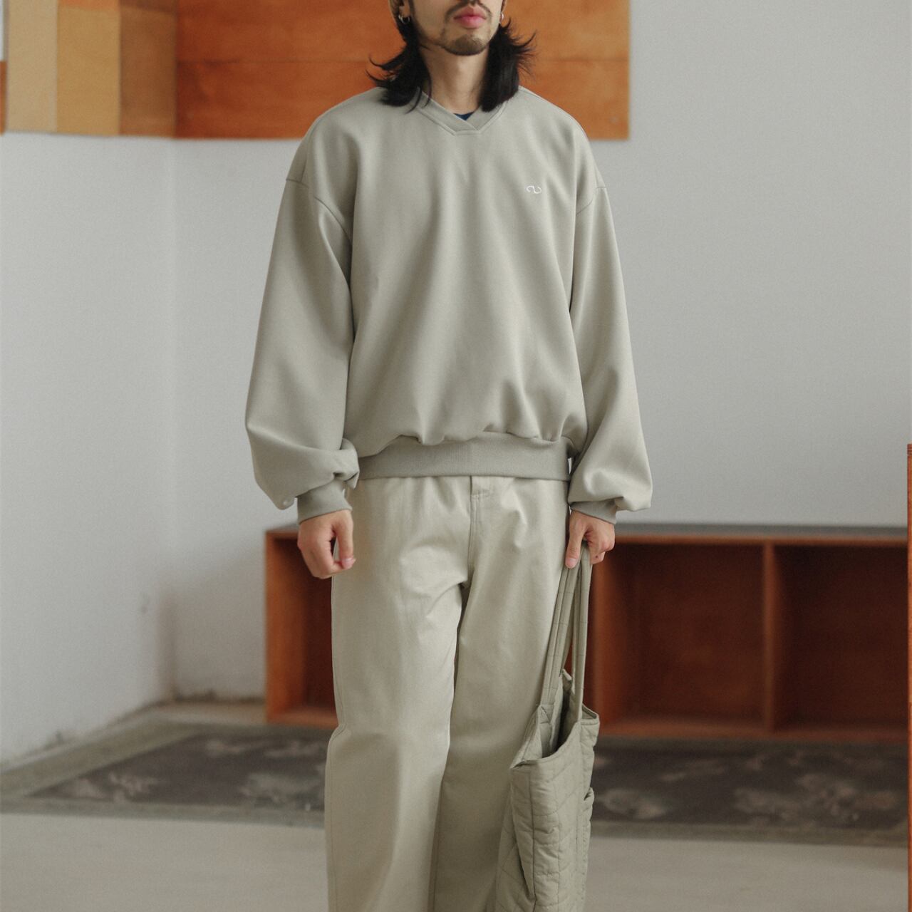 程よいゆったり感とシンプルなデザインが特徴のVネックスウェット。厚みのある柔らかな素材感で、ルーズなシルエットながらも上品な雰囲気を演出。ストリートからルームウェアまで幅広く使える万能アイテムです。