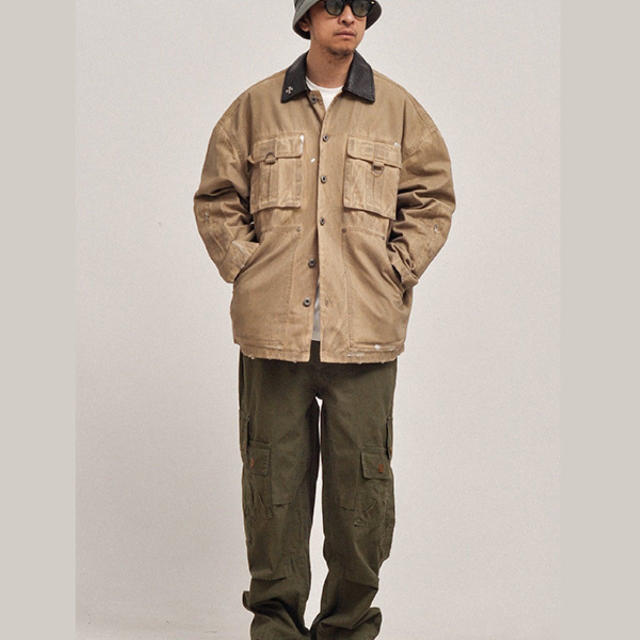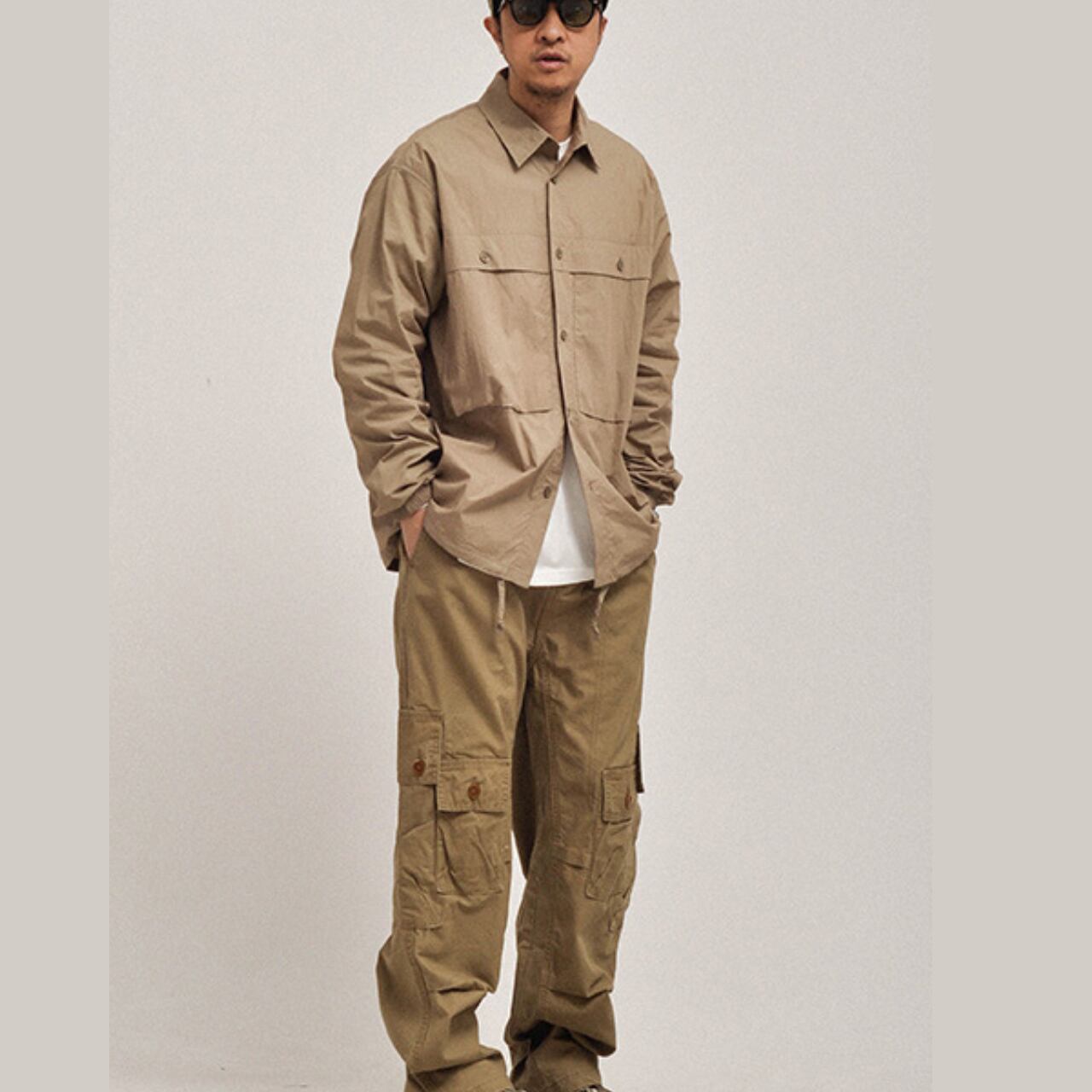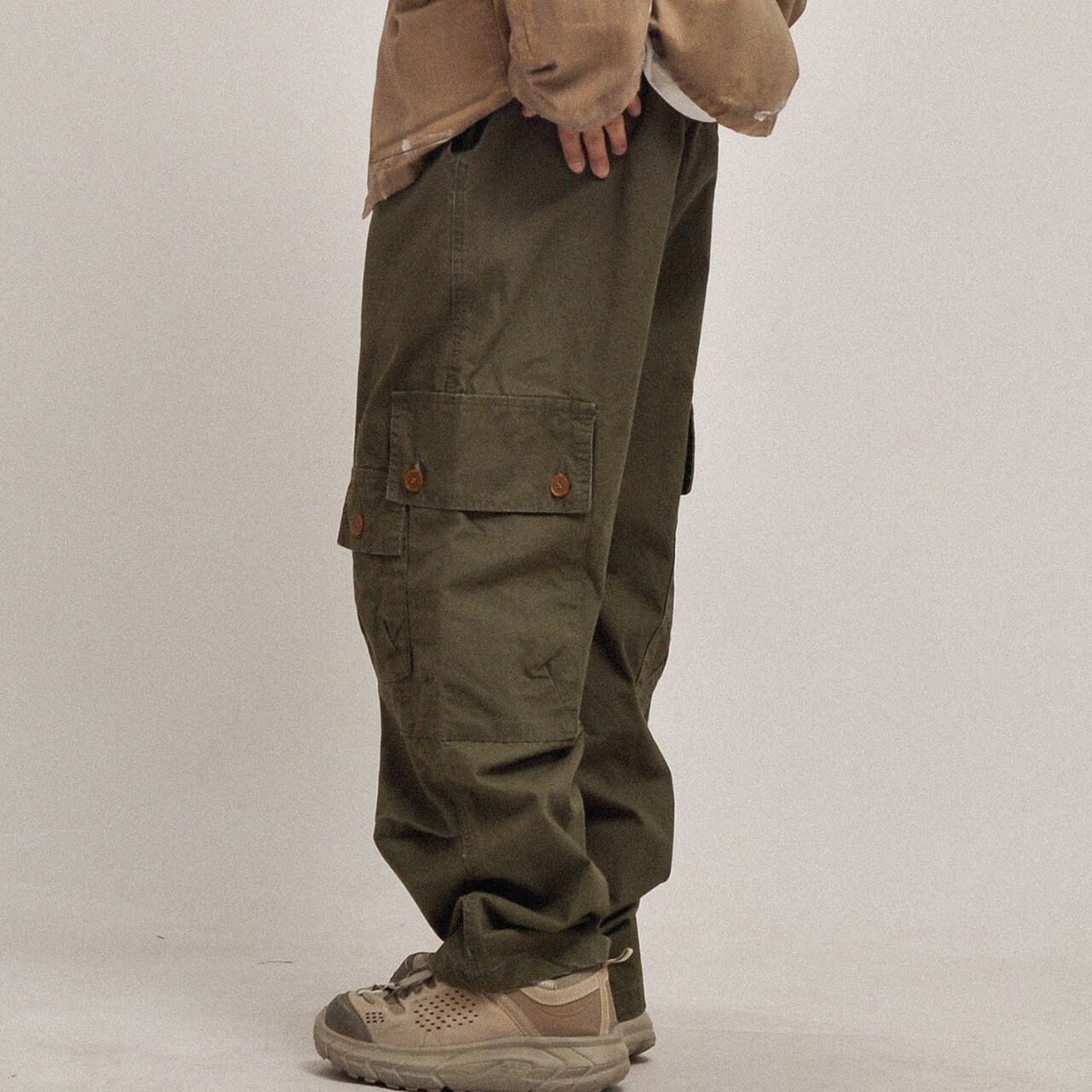 タフなコットン素材を使用したマルチポケットカーゴパンツ。機能的な収納ポケットが特徴で、ストリートからアウトドアまで幅広く活躍するデザイン。ゆったりとしたシルエットで動きやすく、ヴィンテージライクなスタイリングにもぴったりのアイテムです。