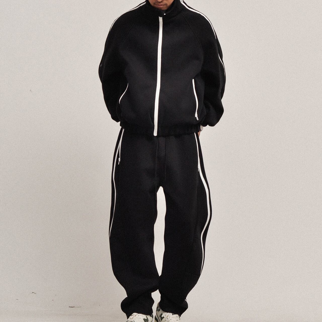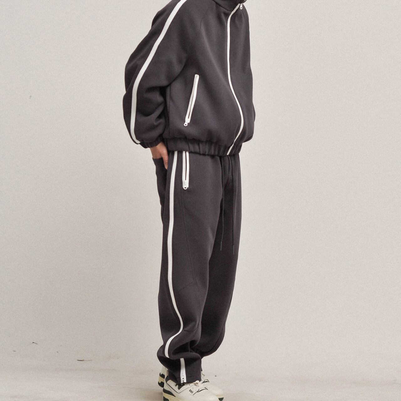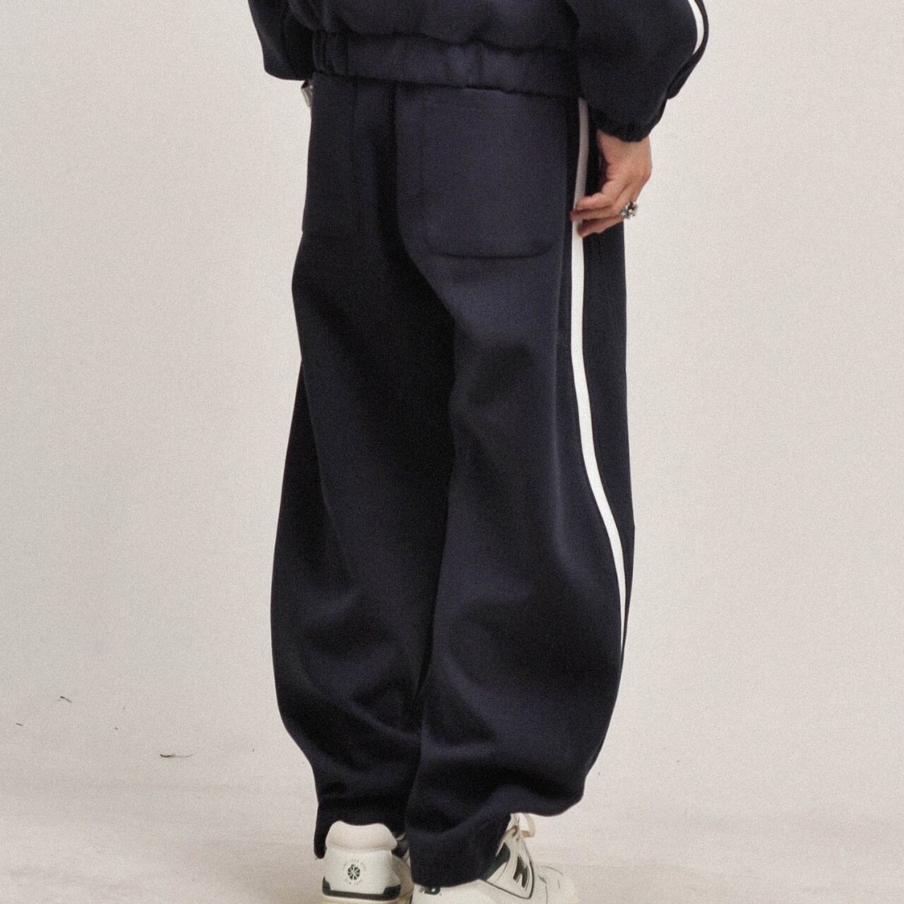 サイドに配されたコントラストラインが特徴のスポーツスウェットパンツ。ジャージ素材のように伸縮性があり、快適な穿き心地。セットアップのトップスと合わせてスポーティーにも、単品でストリートコーデにも活用できます。