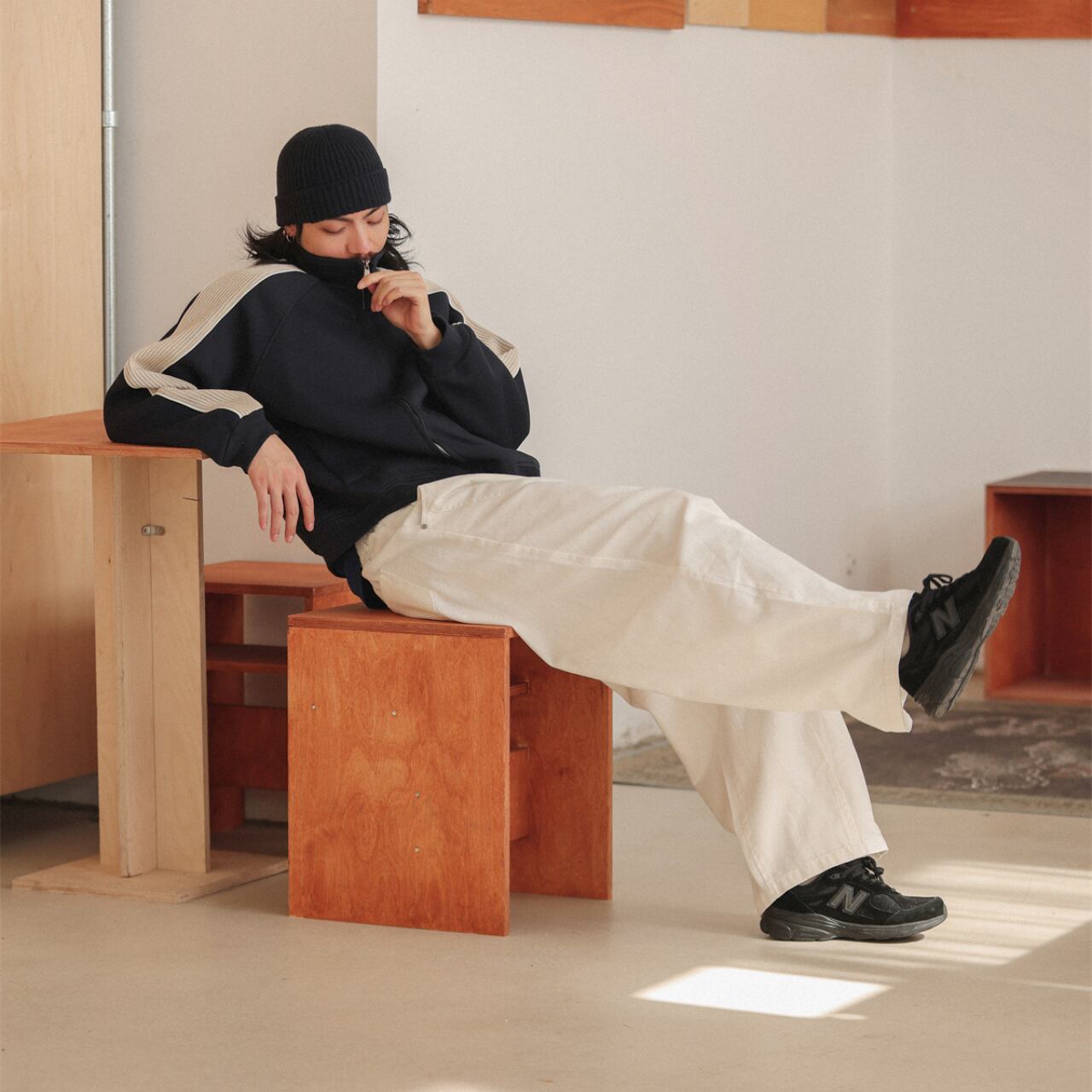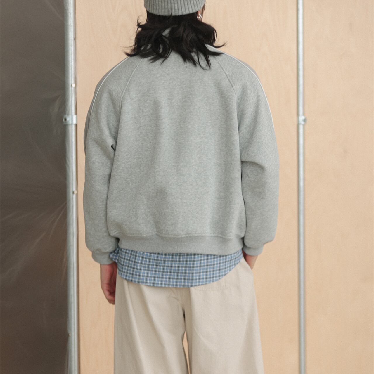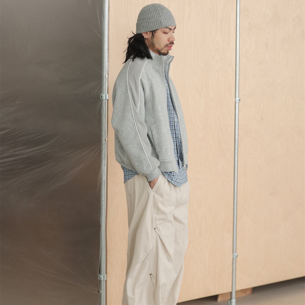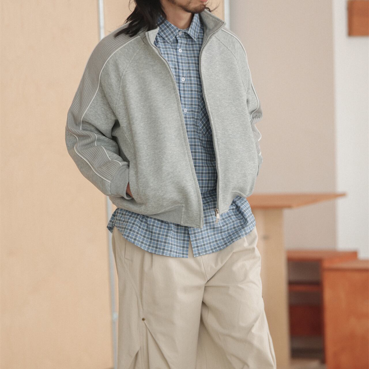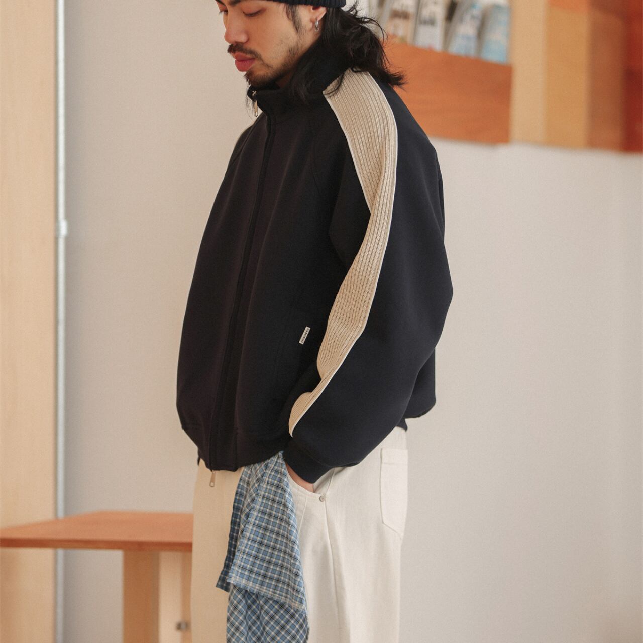 袖のリブ切り替えラインが特徴のスタンドカラートラックジャケット。程よい厚みのあるスウェット生地で、柔らかく快適な着心地。ストリートスタイルからカジュアルまで幅広く着回せる一着です。
