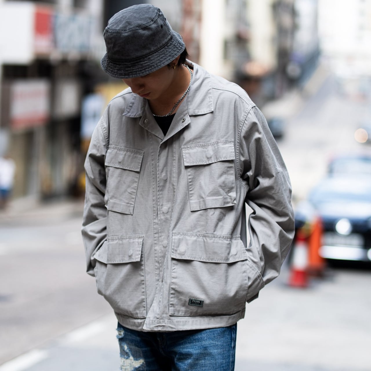 小さめの襟と洗い加工が施された風合いが、クラシックでありながら都会的なムードを演出します。フロントのフラップポケットやバックプリントが存在感を引き立て、街中でもアウトドアでも活躍する一枚。ゆったりとしたシルエットで、ラフに羽織るだけでバランスの良い着こなしが完成します。