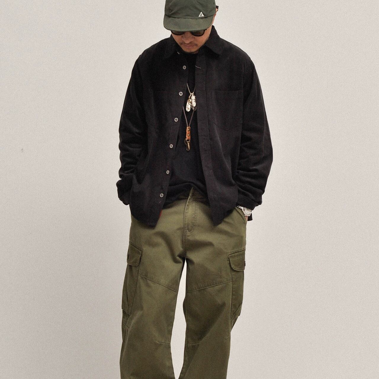 シンプルなデザインながら程よくルーズなシルエットで、羽織としてもインナーとしても着回しが効きます。ミリタリーパンツやワイドパンツとの相性が良く、ストリート感と無骨さを演出。都会的にもアウトドアにも映える万能アイテムです。