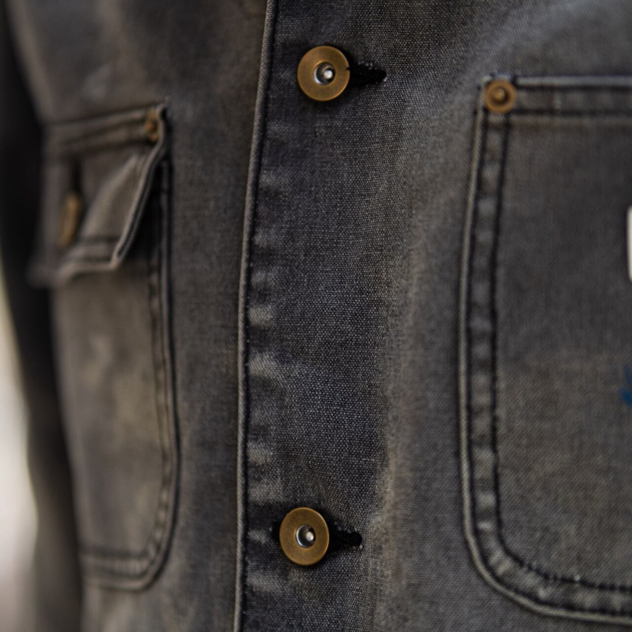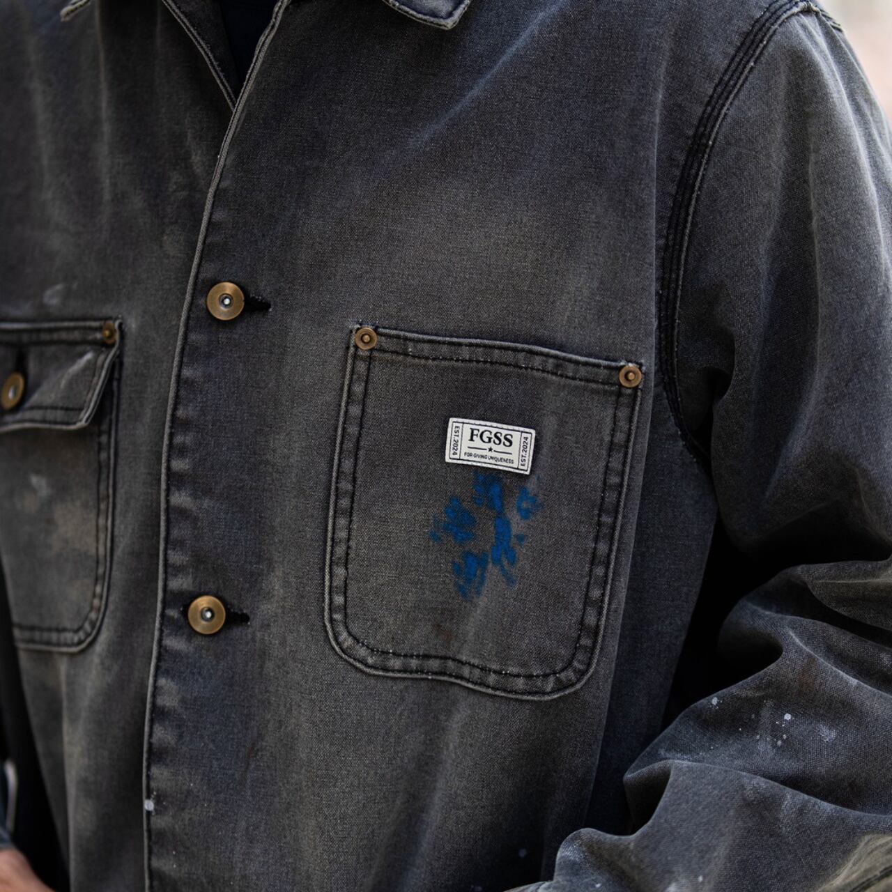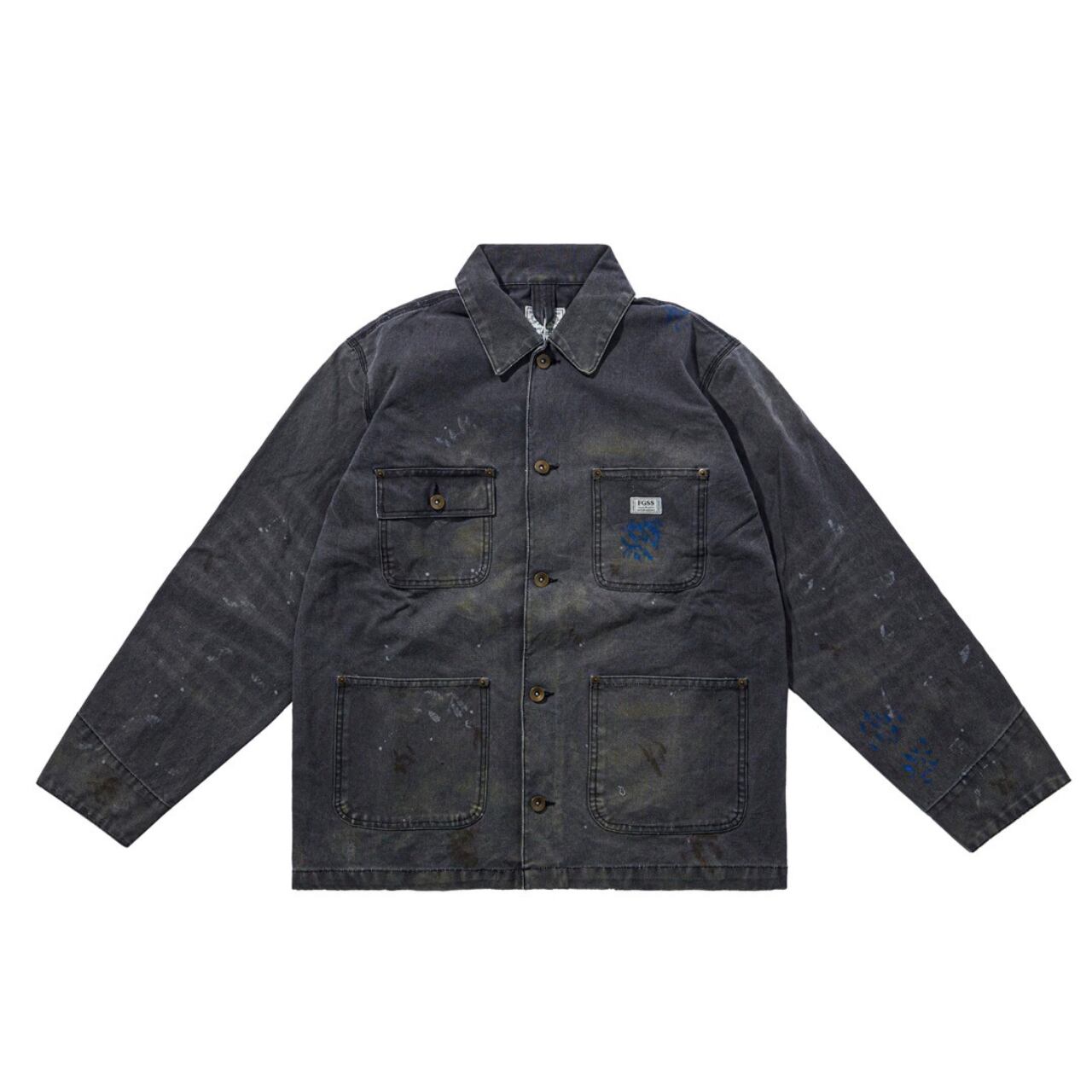 ヘビーウォッシュ加工を施した純綿素材を使用したヴィンテージ調ワークジャケット。オーバーサイズのシルエットに加え、多数のポケットが付いたデザインで実用性も抜群。古着ライクな雰囲気を持ちながら、ストリートでもアウトドアでも幅広く活躍できるアイテムです。