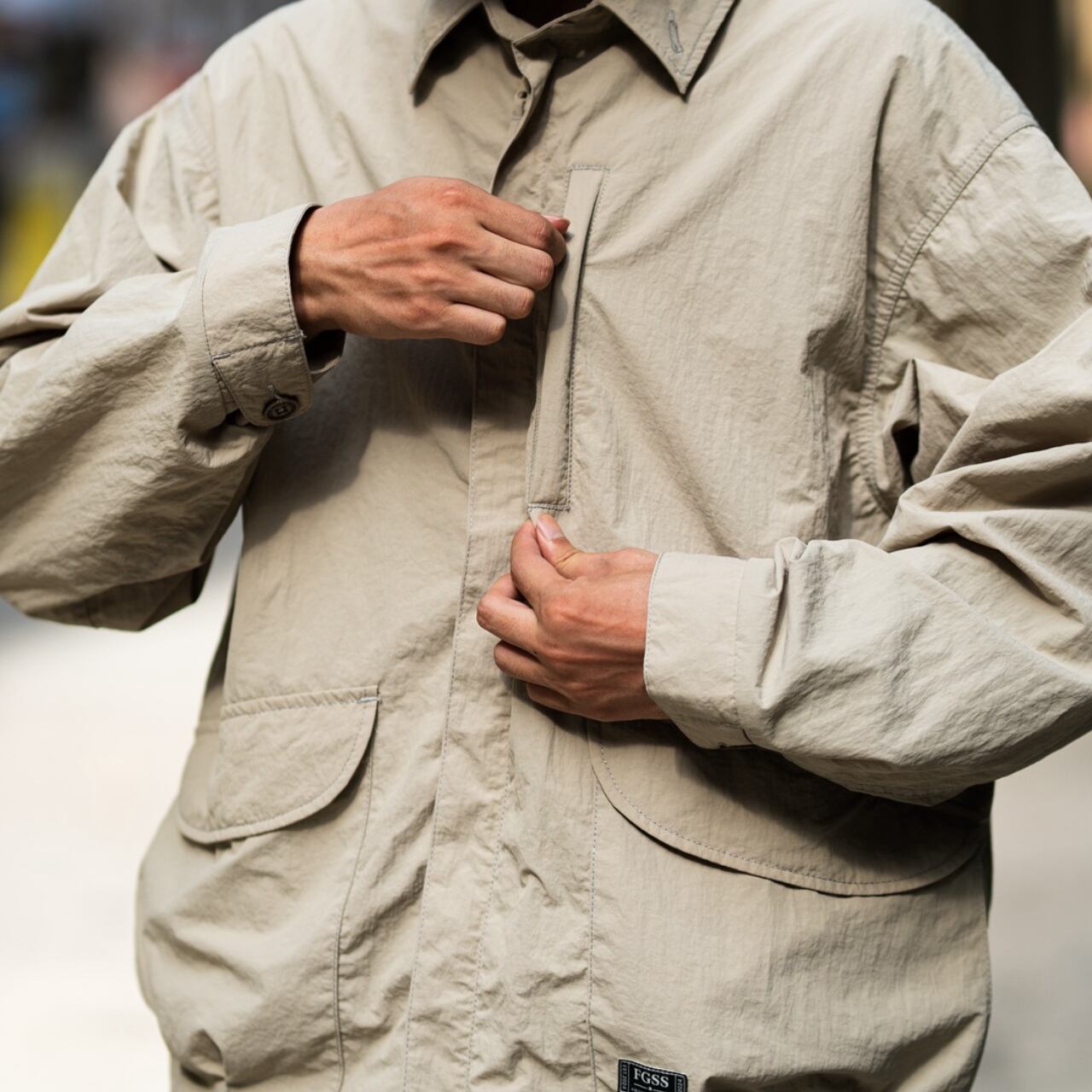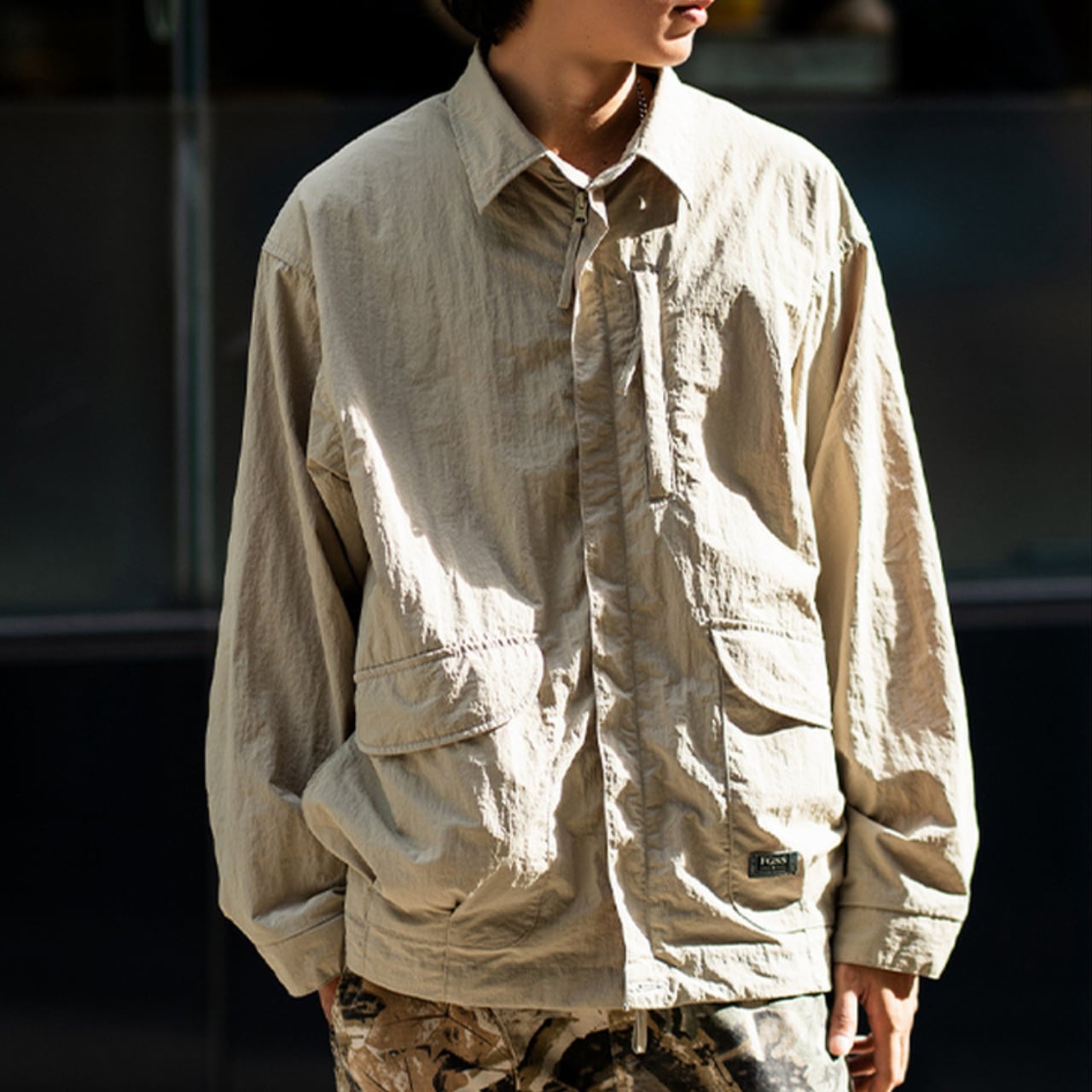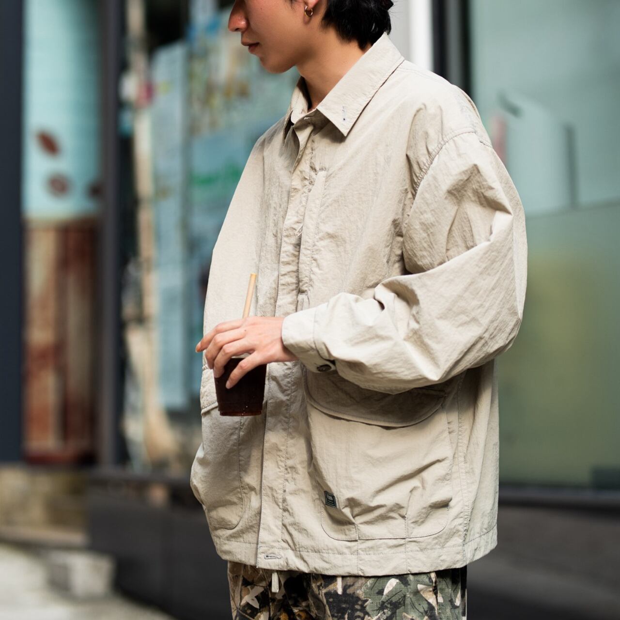 クラシックなワークジャケットをベースにした多ポケットデザインのライトアウター。小さめの襟元や比翼仕立て、裾の立体ポケットなど細部にこだわりが詰まっています。ラグランスリーブ仕様で動きやすく、短め丈のシルエットは全体のバランスを引き締め、スタイルアップ効果も◎。軽量かつしっかりとしたナイロン混素材で、街でもアウトドアでも活躍できる万能ジャケットです。