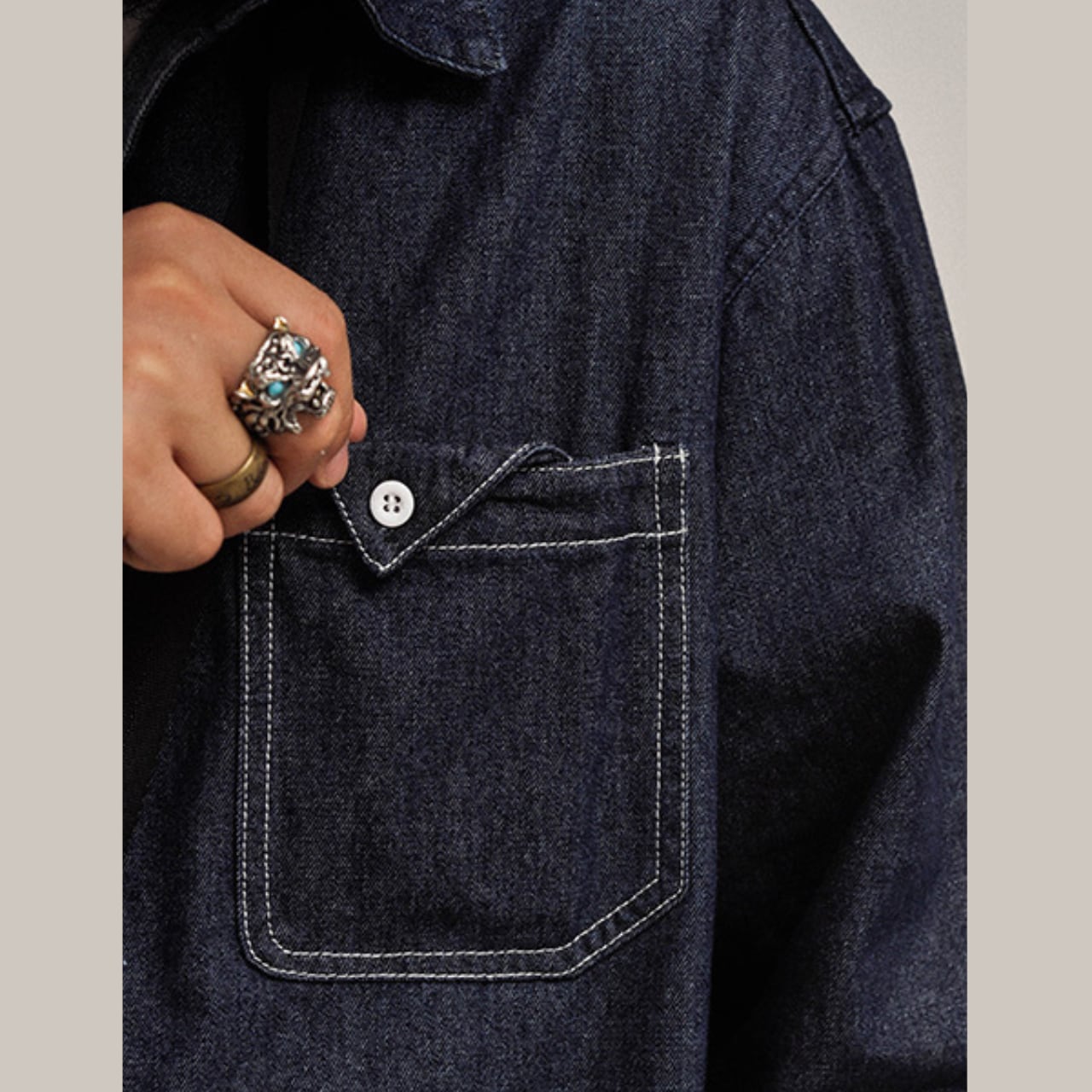 ベーシックなデザインに胸ポケットを備えたデニムシャツ。しっかりとした生地感で、羽織りとしてもインナーとしても着用可能。街でもアウトドアでも活躍する万能な一枚です。
