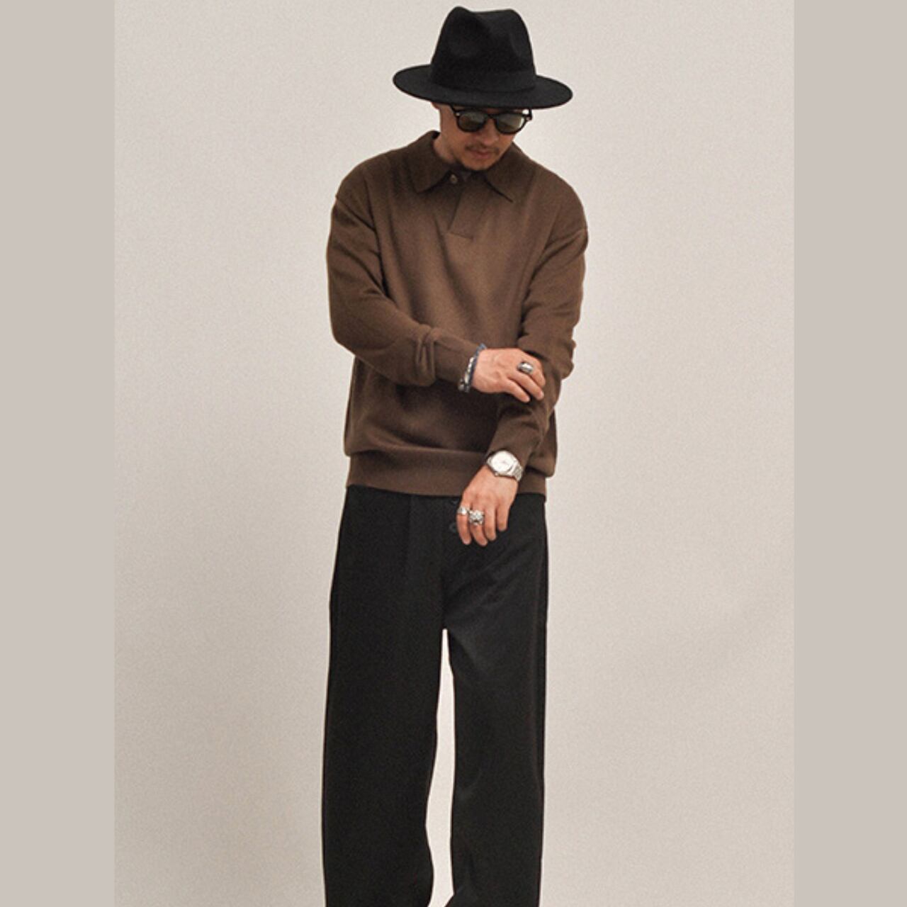 スラックスやワイドパンツと合わせれば大人のリラックススタイルに。