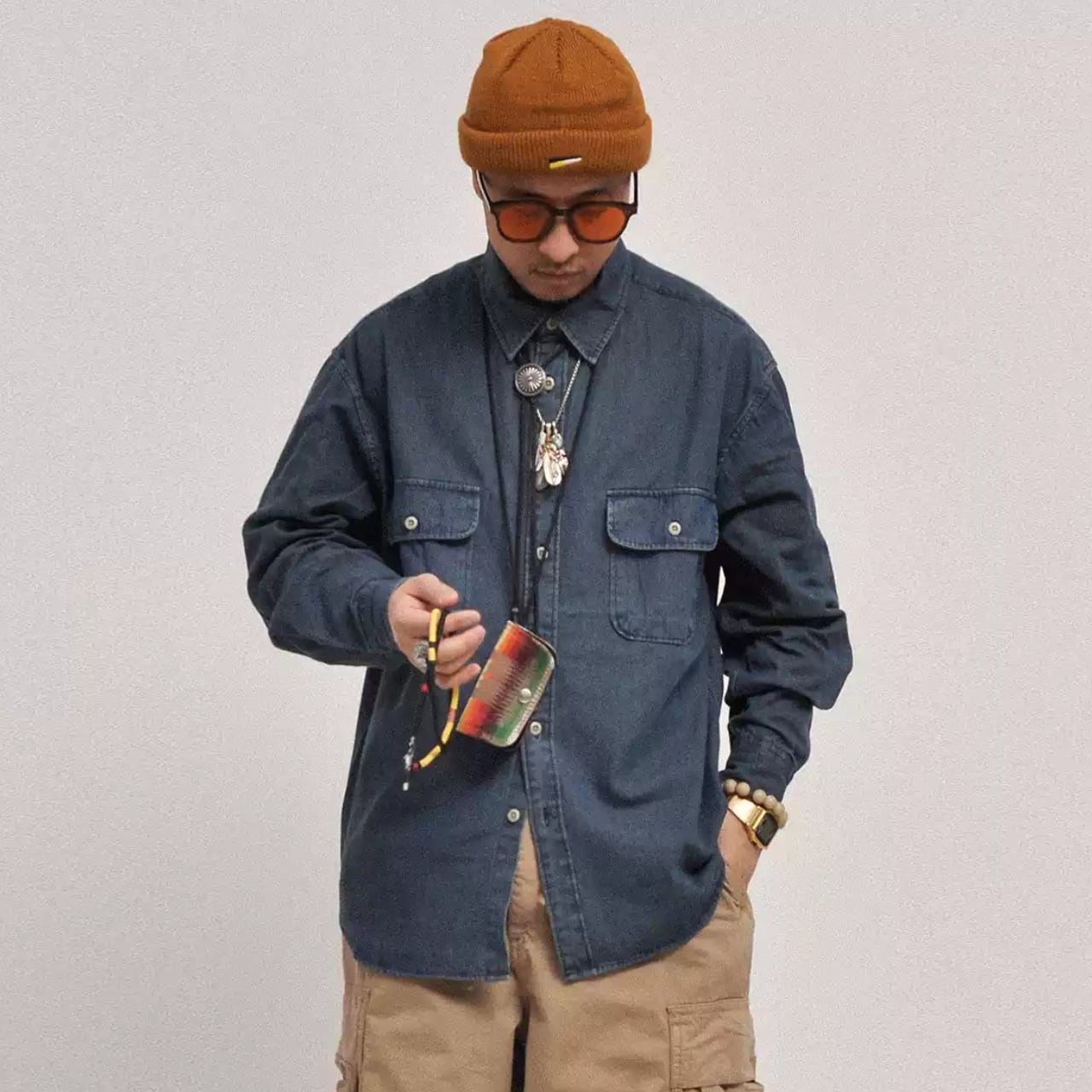 胸元の大きなポケットが特徴的なワークテイストのデニムシャツ。しっかりとした生地感ながら柔らかさもあり、ストリートスタイルからアウトドアシーンまで幅広く活躍します。羽織りとしてもインナーとしても使える万能アイテムです。