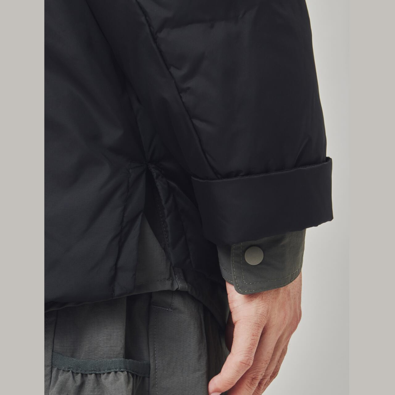 ゆったりとしたシルエットでレイヤードがしやすく、防寒性と動きやすさを両立。