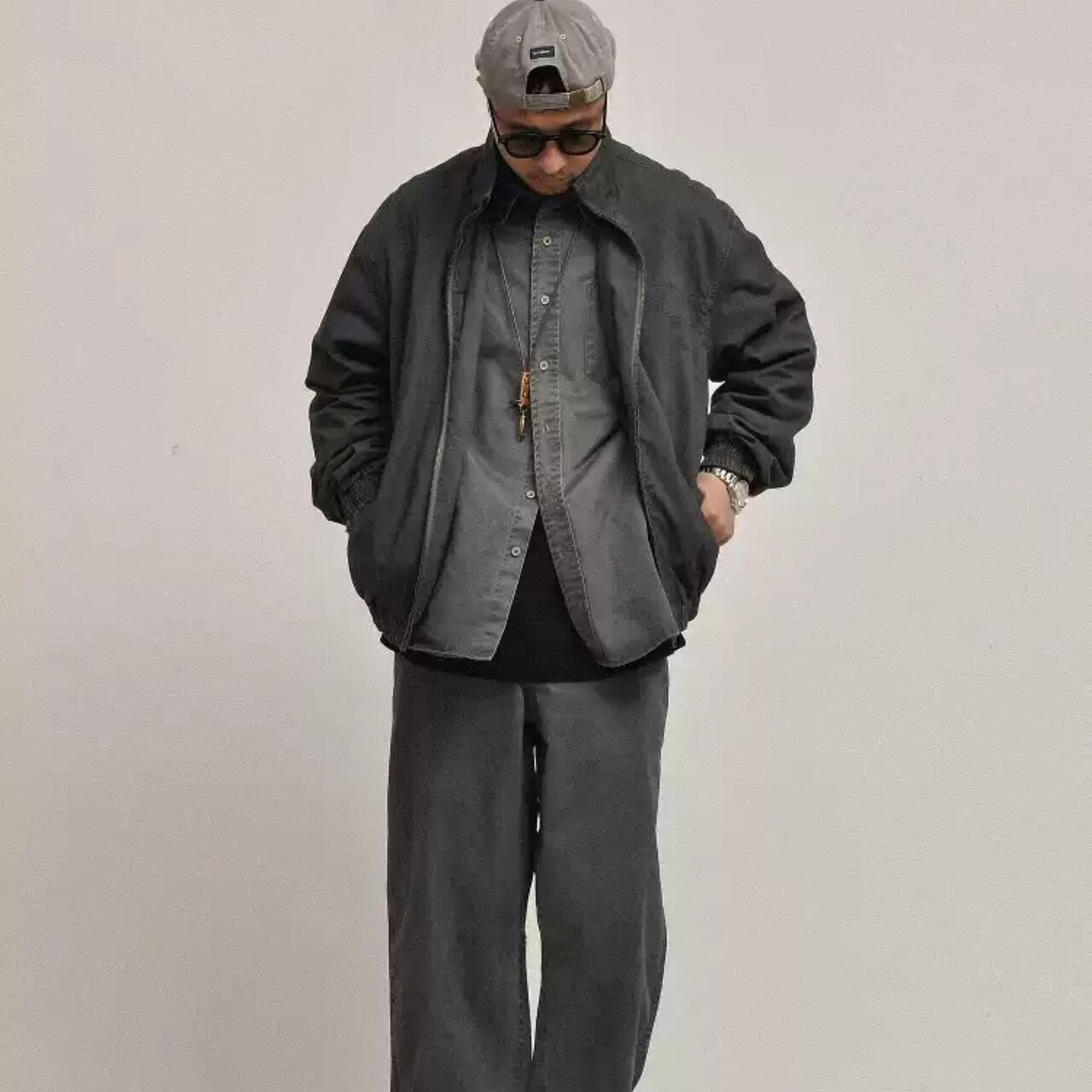 無骨さと上品さを兼ね備えた、スタンドカラーのコットンジャケット。独特のウォッシュ加工によるヴィンテージ感が、シンプルながらも深みのある表情を演出します。軽やかな着心地と程よいゆとりのシルエットは、インナーを選ばず季節を問わず活躍。デニムやスラックスと合わせれば都会的に、ワークパンツと合わせればラフでタフな印象に仕上がります。毎日のコーディネートに取り入れるだけで、洗練された大人の雰囲気を纏える一着です。