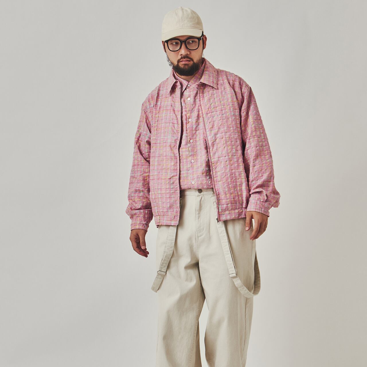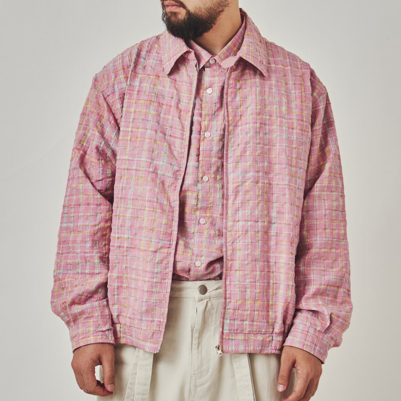 シワ加工を施した独特な表情のチェック柄ジップジャケット。