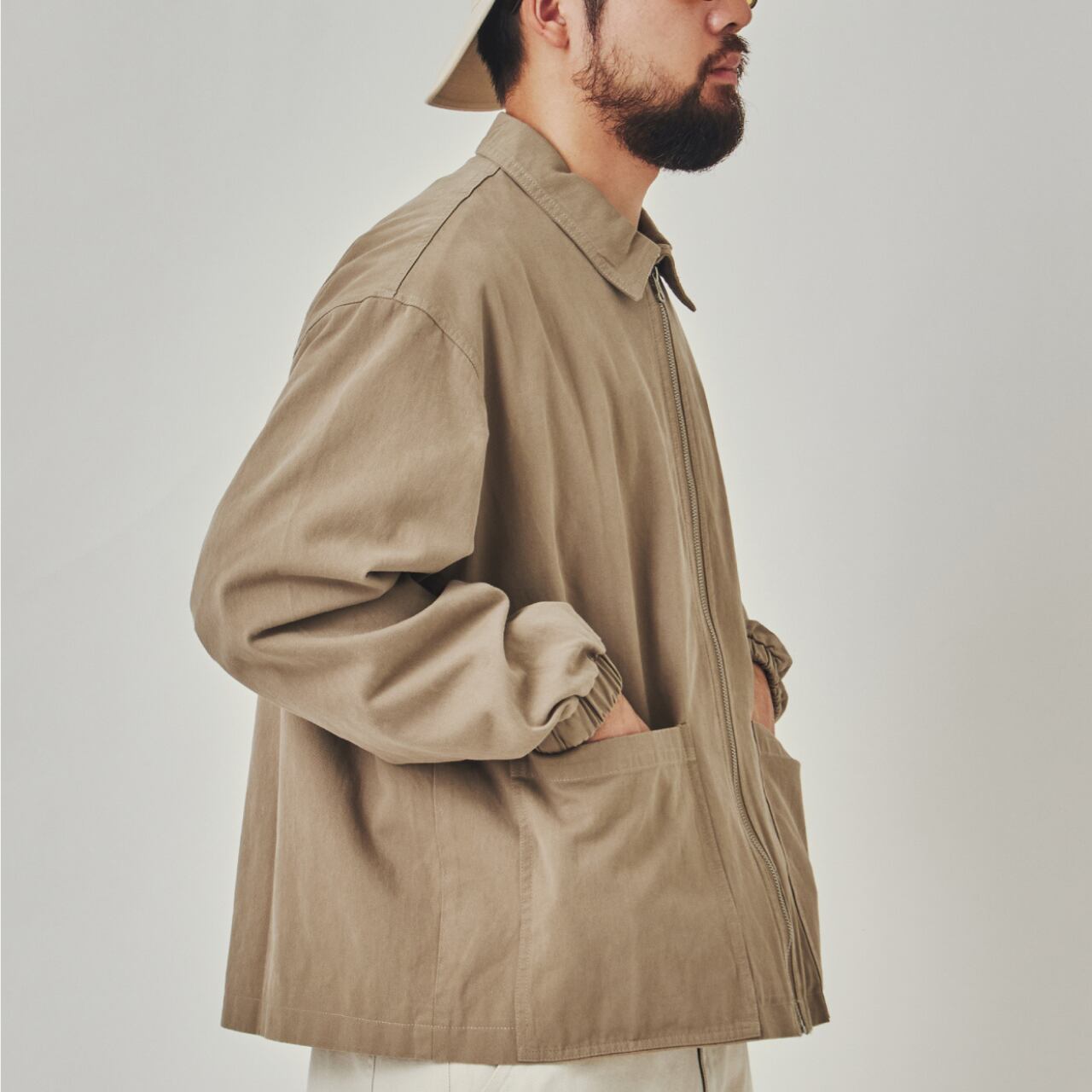 フロントの大きめポケットとジップアップ仕様で実用性を兼ね備え、裾と袖口のゴム仕様がシルエットをすっきりと見せてくれます。