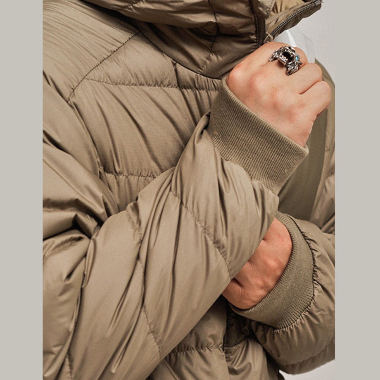 86〜90%の上質なホワイトダックダウンを使用し、ふんわりとした高い保温性を持ちながらも軽やかな着心地を実現。