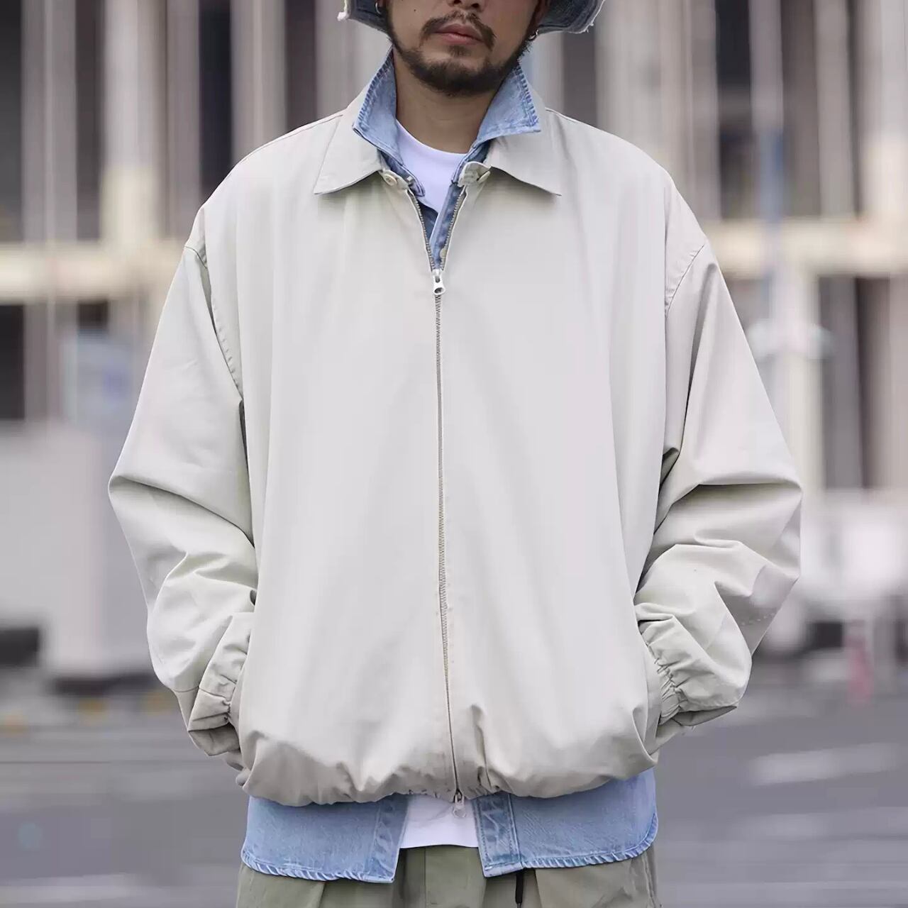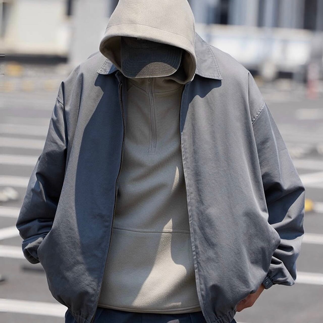 #gate #cityboyootd #スタンドカラーブルゾン #ミニマルコーデ #シティボーイ #春アウター #秋アウター #ワイドシルエット #綿ジャケット #レイヤードスタイル #ファッション #ykkジップ #ドロップショルダー