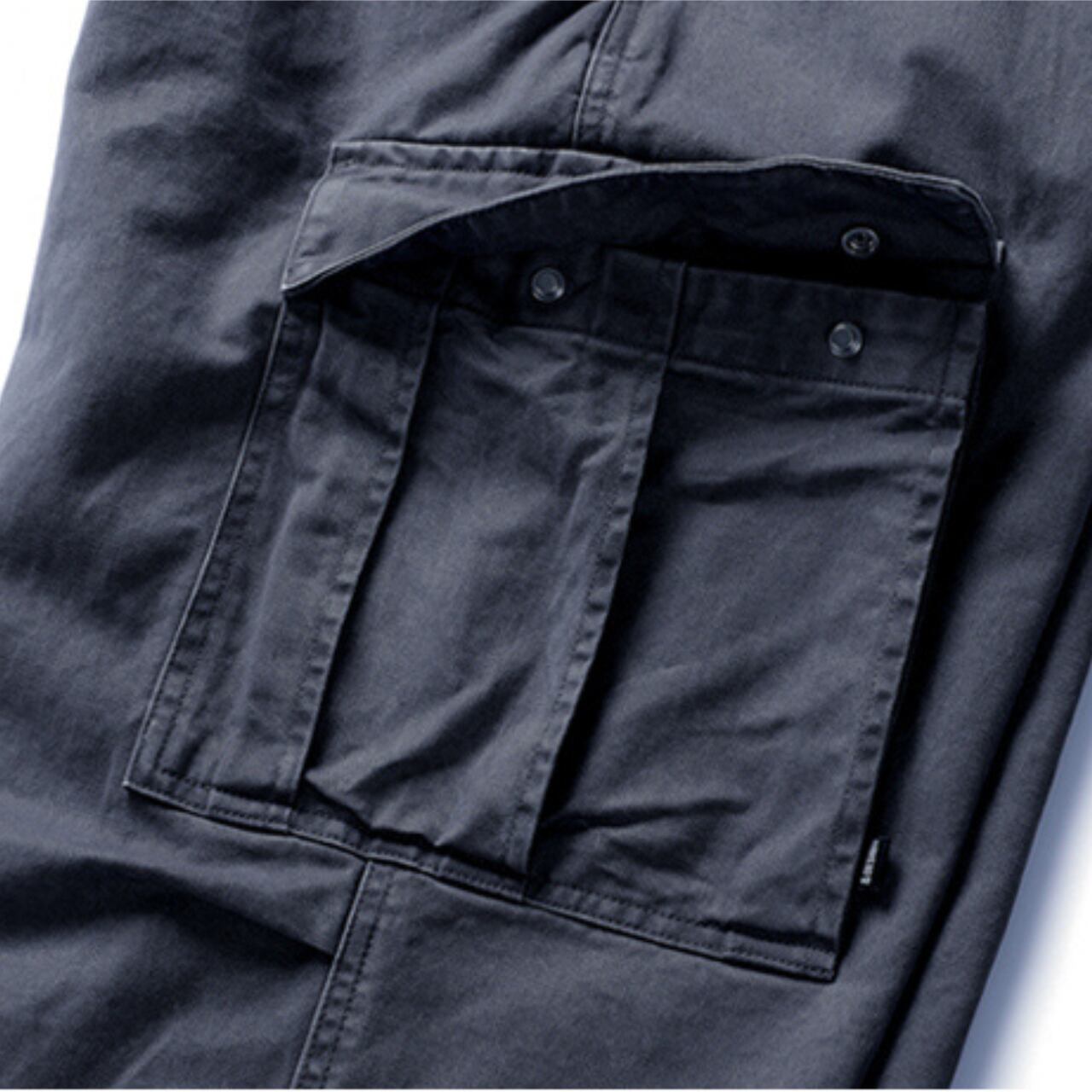タフで無骨な雰囲気を演出するヘビーオンスのカーゴパンツ。程よく厚手のコットン生地はハリ感があり、穿き込むほどに風合いが増す仕上がりに。立体感のあるダーツを施すことで、シルエットにアクセントをプラス。ゆったりとしたストレートワイドシルエットで、アウトドアやストリートスタイルにも最適。