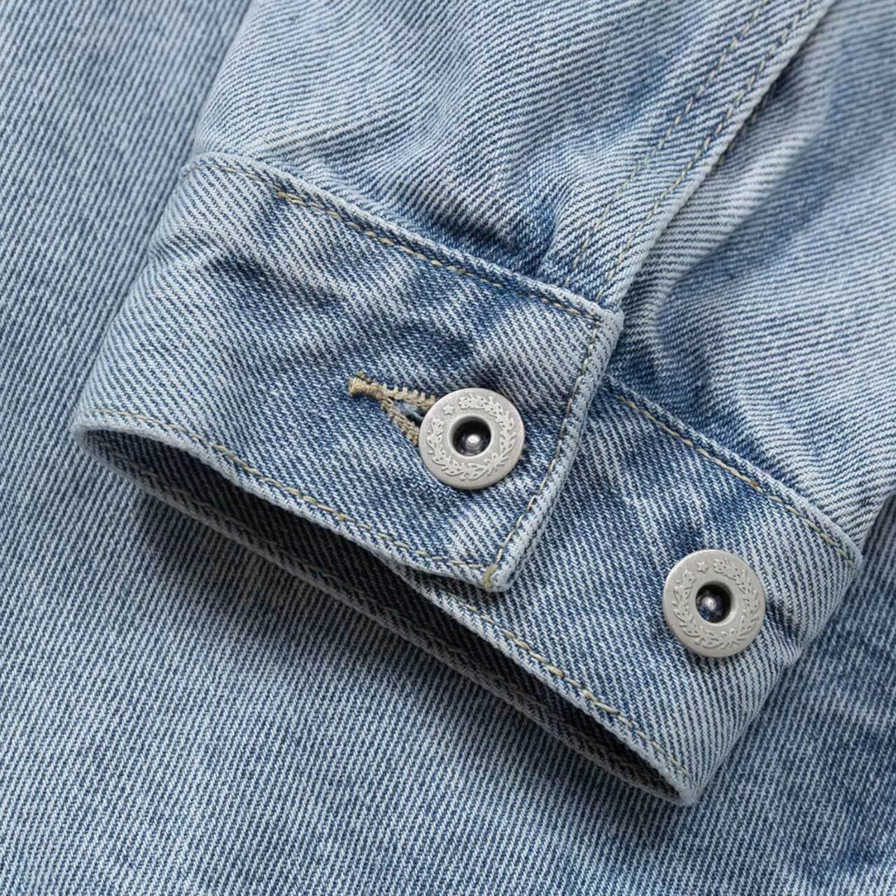 何度も洗いを重ねることで生まれた自然なフェード感と、ヴィンテージライクな風合いが魅力。襟元や縫い目には軽いダメージ加工を施し、着込むほどに味わいが増す一着です。