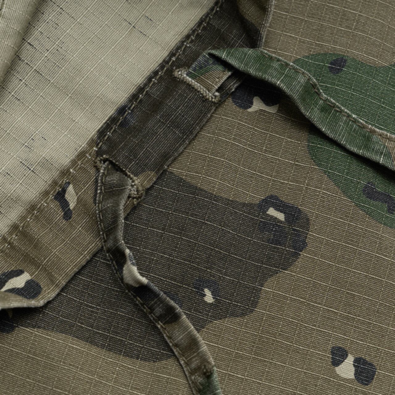 厚手コットンリップストップ生地を使用し、耐久性と通気性を兼ね備えています。