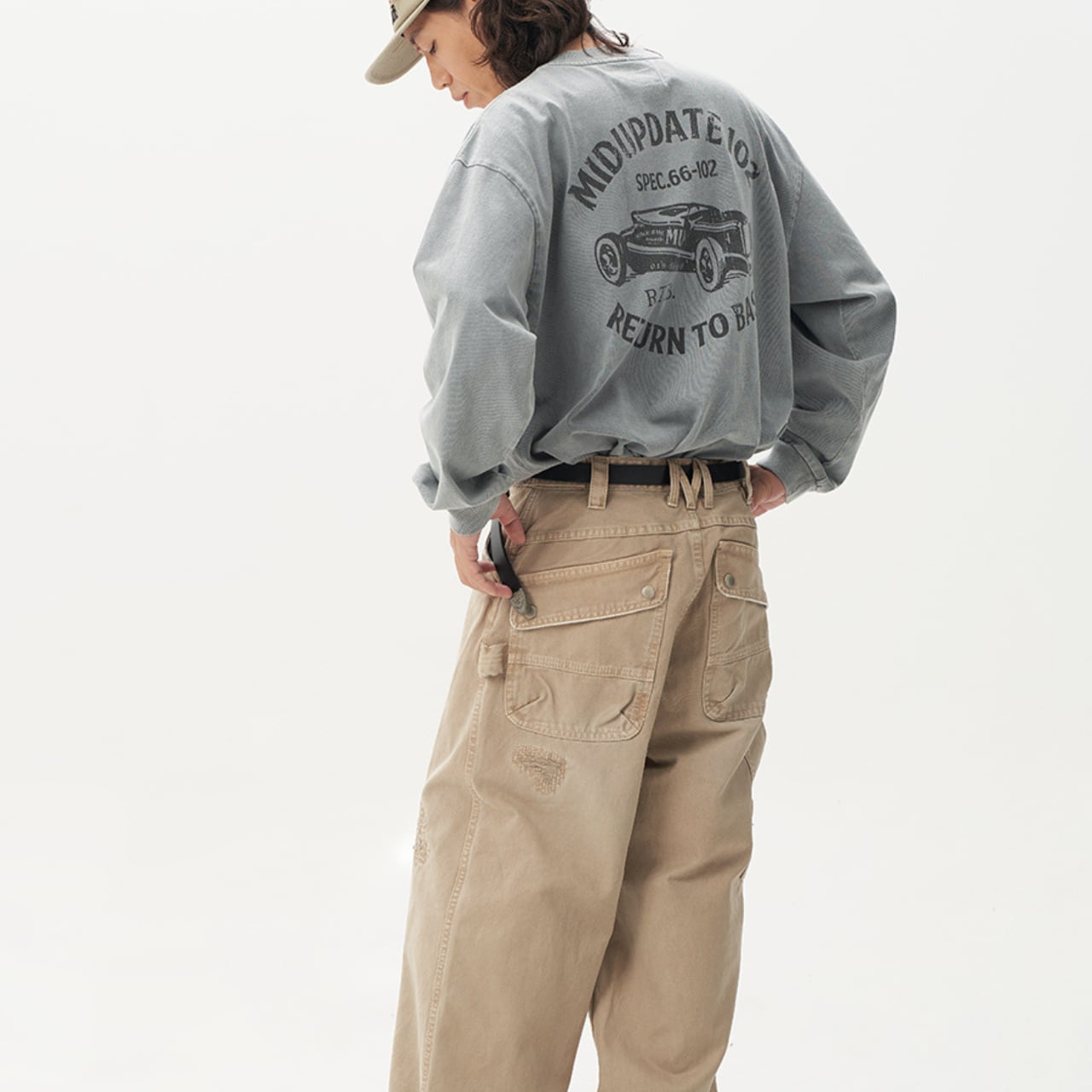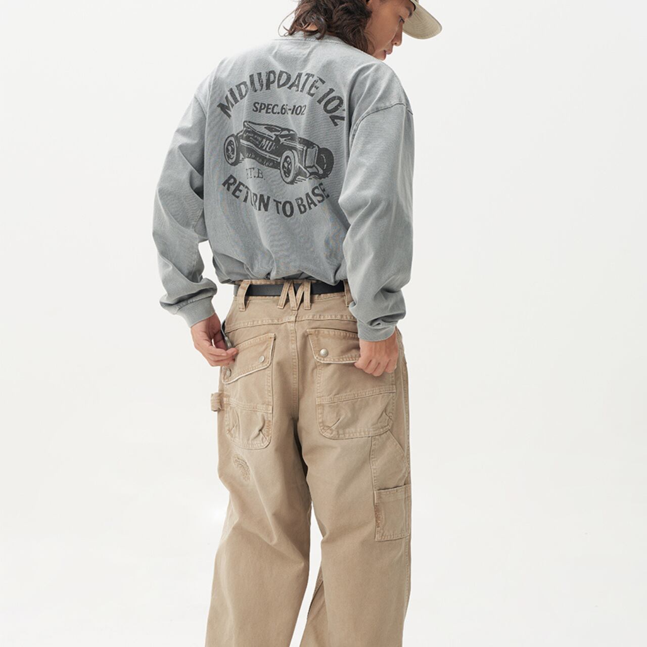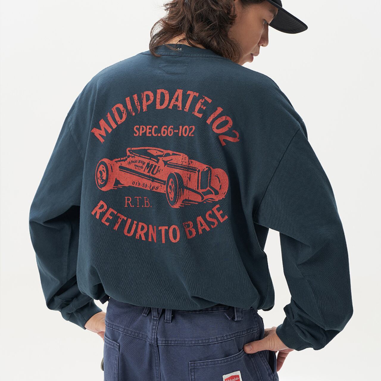 背面にはヴィンテージ感のあるカーモチーフプリントを施し、