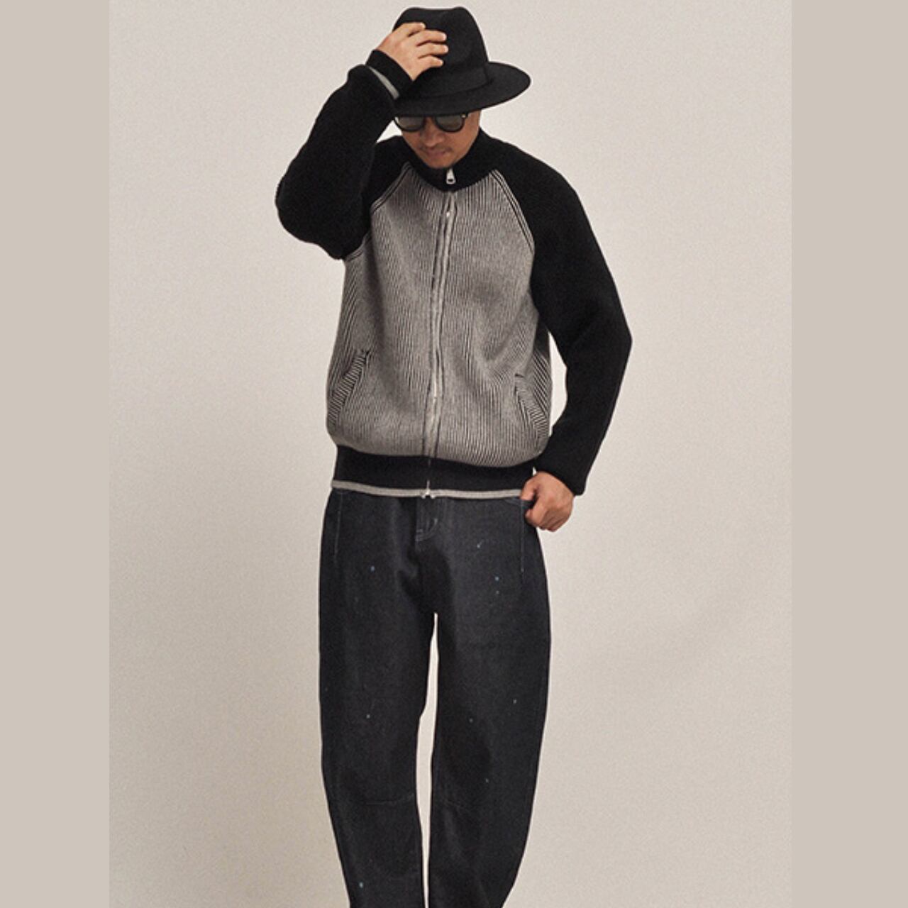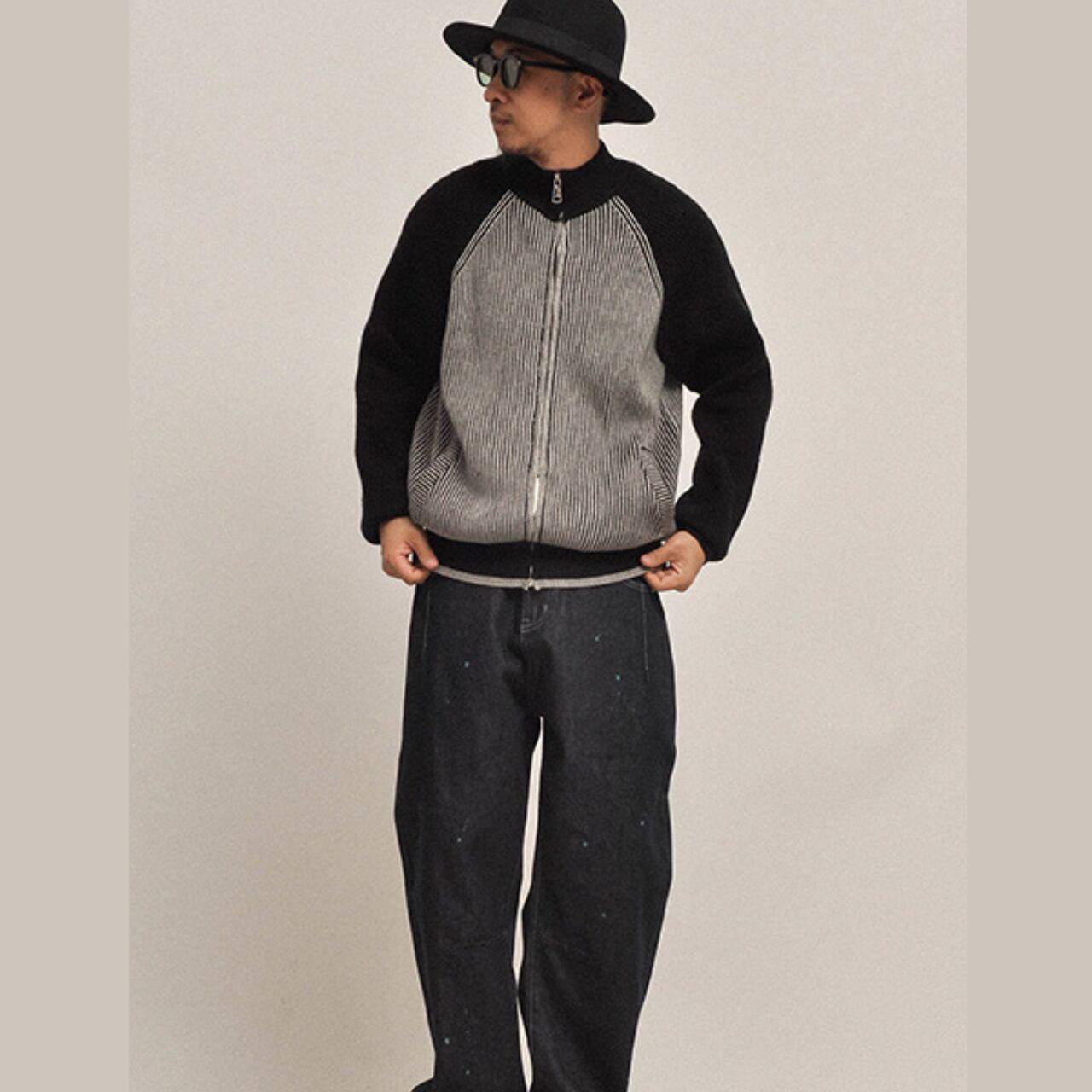 重厚感のあるモノトーンの切り替えデザインが魅力のジップセーター。クラシカルなラグランスリーブと配色ラインで、スタイリングに深みを与えてくれます。ゆったりとしたシルエットで、スウェットやロンTの上から羽織るだけで一気に旬なスタイリングに。秋冬のアウター代わりにも活躍する万能アイテムです。