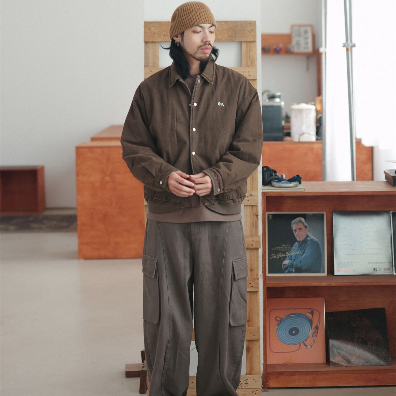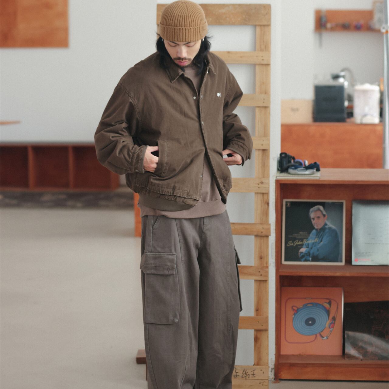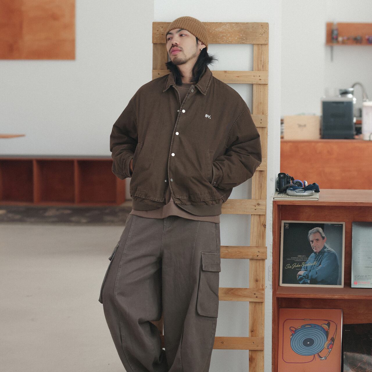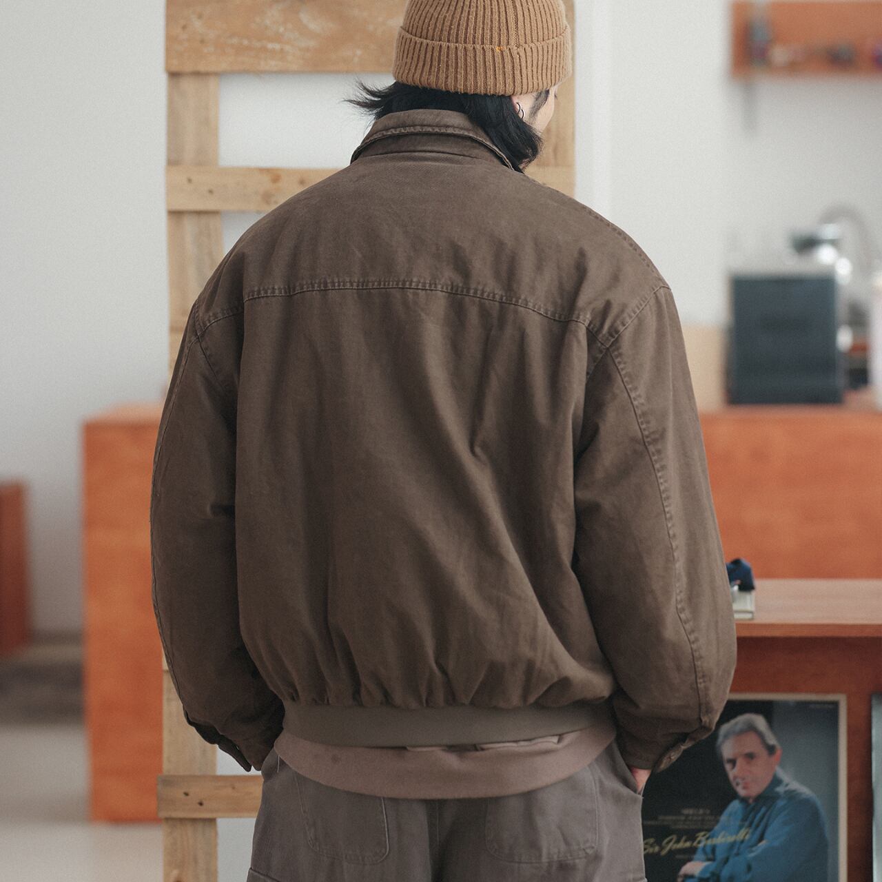 絶妙なブラウンの色味が、カーゴパンツやスウェットと相性抜群。シティボーイからアメカジ好きまで、幅広くハマる汎用性の高いライトアウターです。