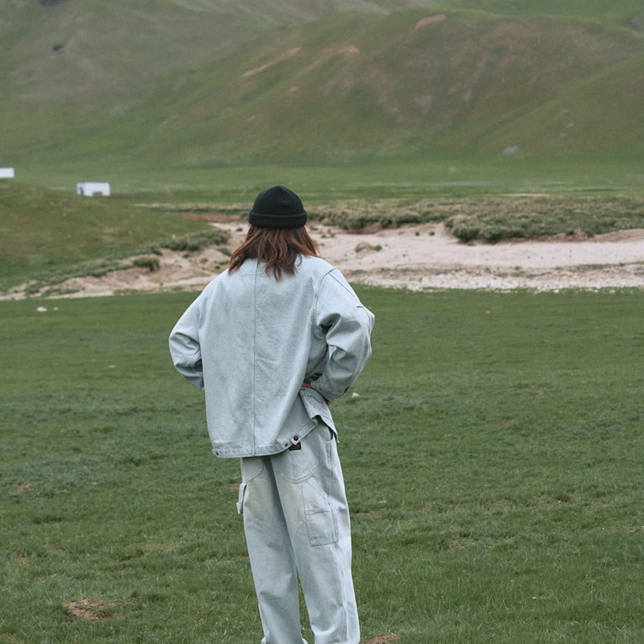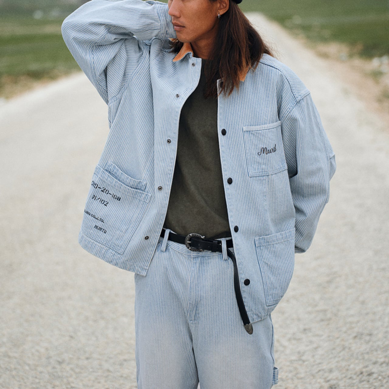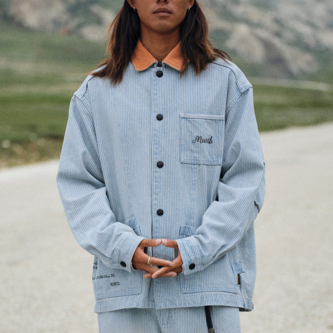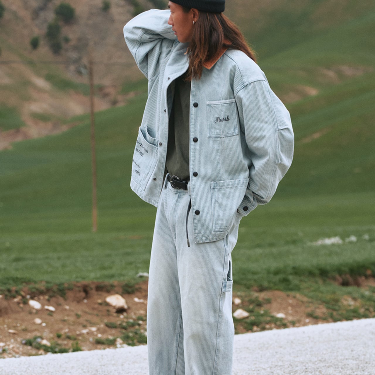 同素材パンツとセットアップで着用可能。山岳ロケーションにもマッチする無骨さと、繊細なディテールが魅力の一着です。