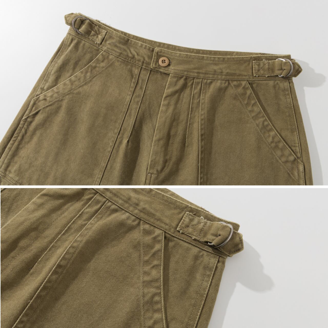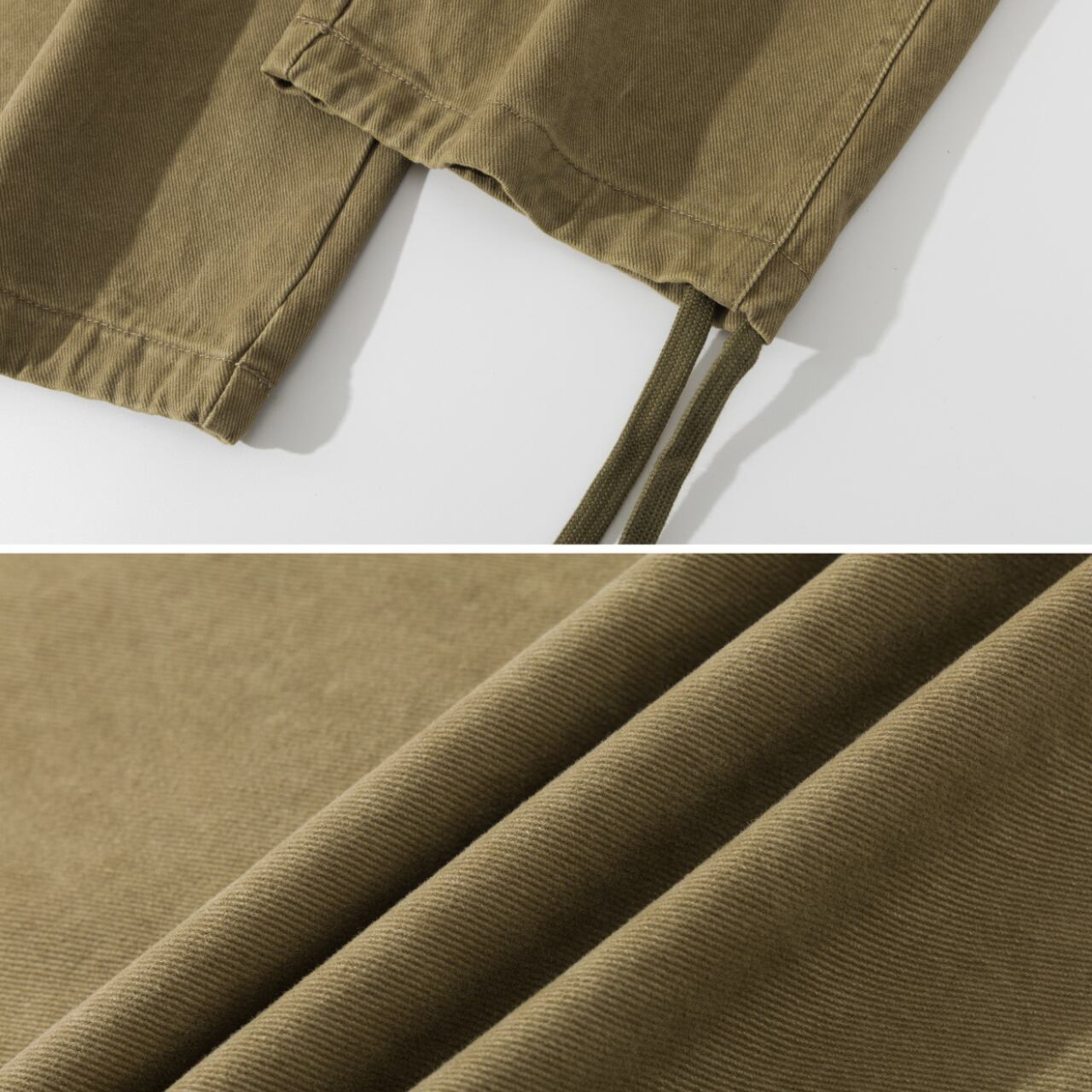 膝に施された切り替えデザインやサイドポケットなど、ワークウェアらしいディテールを活かしながらも、都会的なスタイリングにもハマる汎用性。裾のドローコードを絞ればシルエットに変化をつけられ、着こなしの幅も広がります。