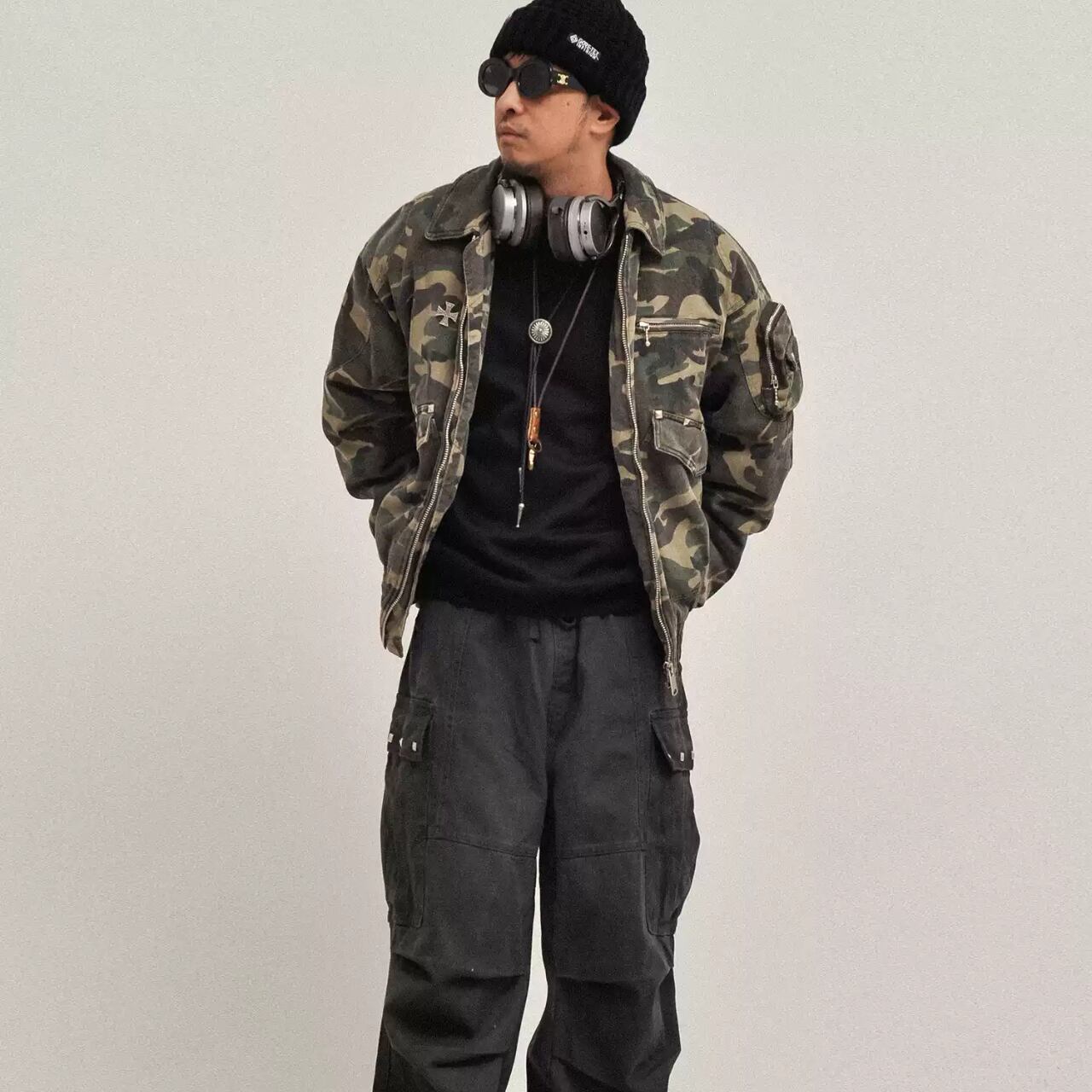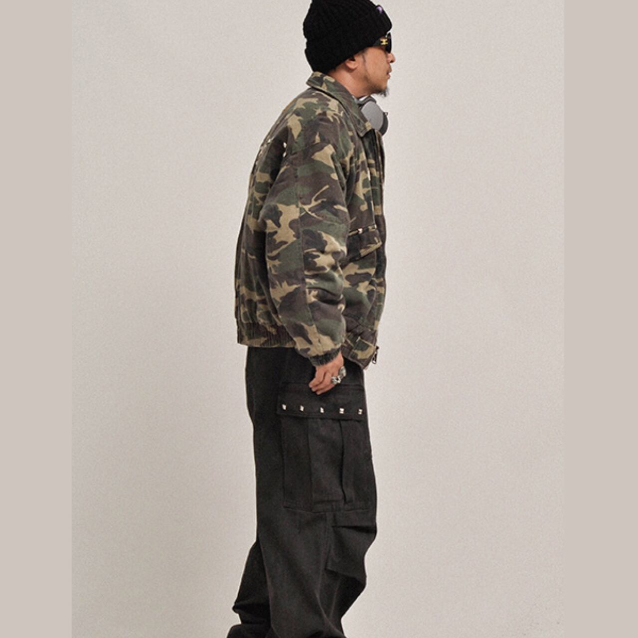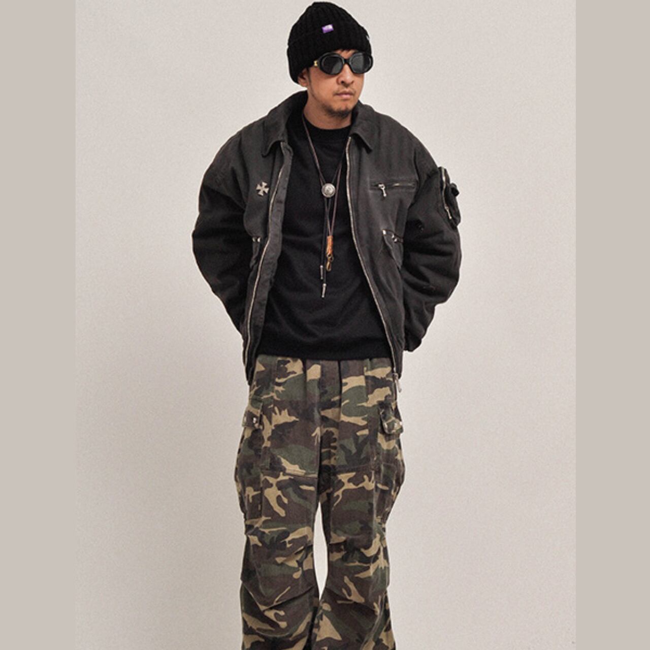 ワイドカーゴパンツやブーツと合わせれば、ストリートとミリタリーの“ちょうどいいバランス”を楽しめる1着。カモ柄とピグメントグレー、どちらも他では見ないカラーリングで、周囲と差をつけるスタイルが完成します。スタイルの主役は、これで決まり。