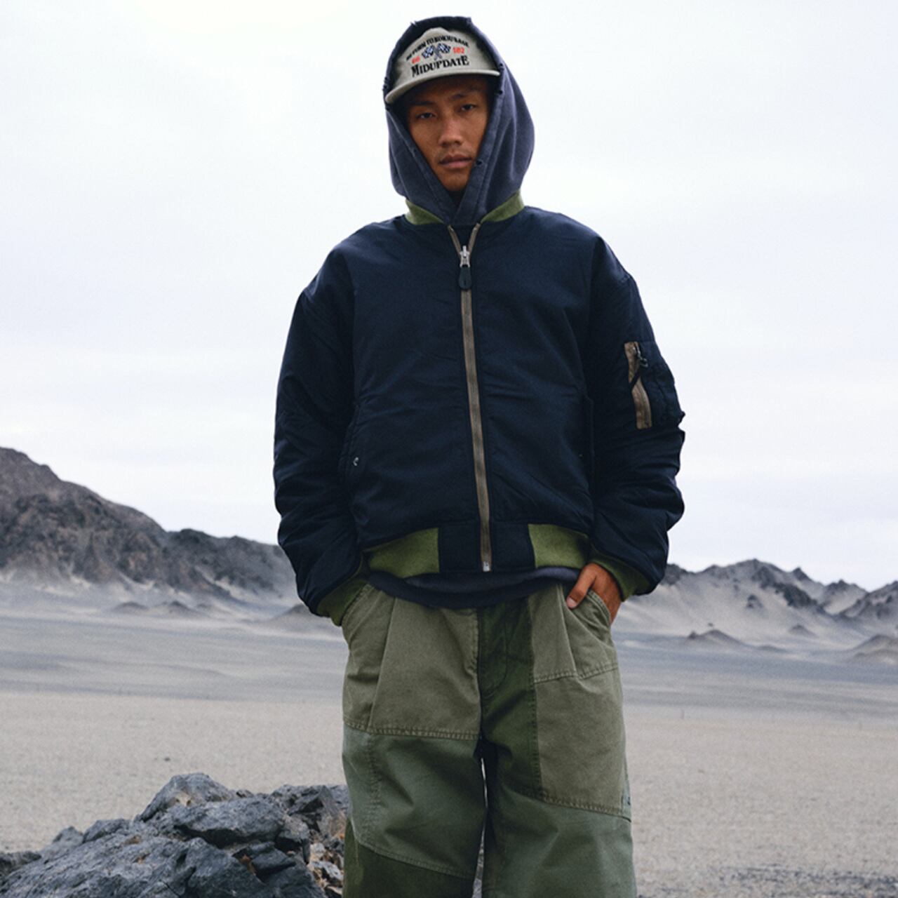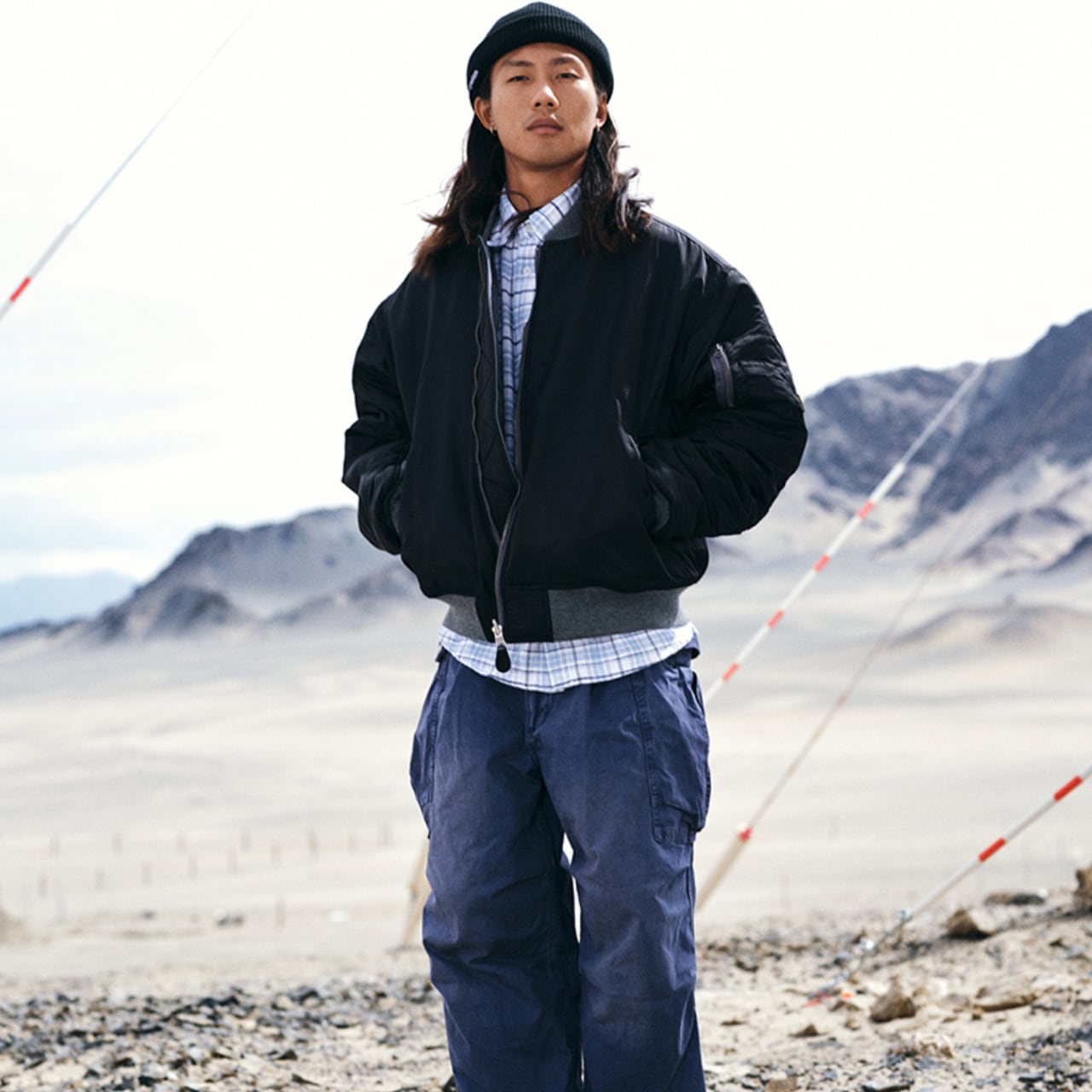 街中からアウトドアシーンまで対応できる多機能なアイテムです。防風性と耐久性を兼ね備えた高品質なナイロン生地を使用し、冷たい風をシャットアウトします。表面はツヤ感のあるブルーとマットなカーキのリバーシブル仕様で、シーンや気分に合わせて着こなしが可能。肩口や胸部に配されたポケットやディテールが、シンプルながらも機能美を感じさせるデザイン。リブ編みの襟と裾が風を防ぎ、暖かさをキープします。アクティブに動き回りたい日でも、スタイリッシュに決まる一枚です。キャンプやカジュアルな日常使いにもぴったりのアイテム。