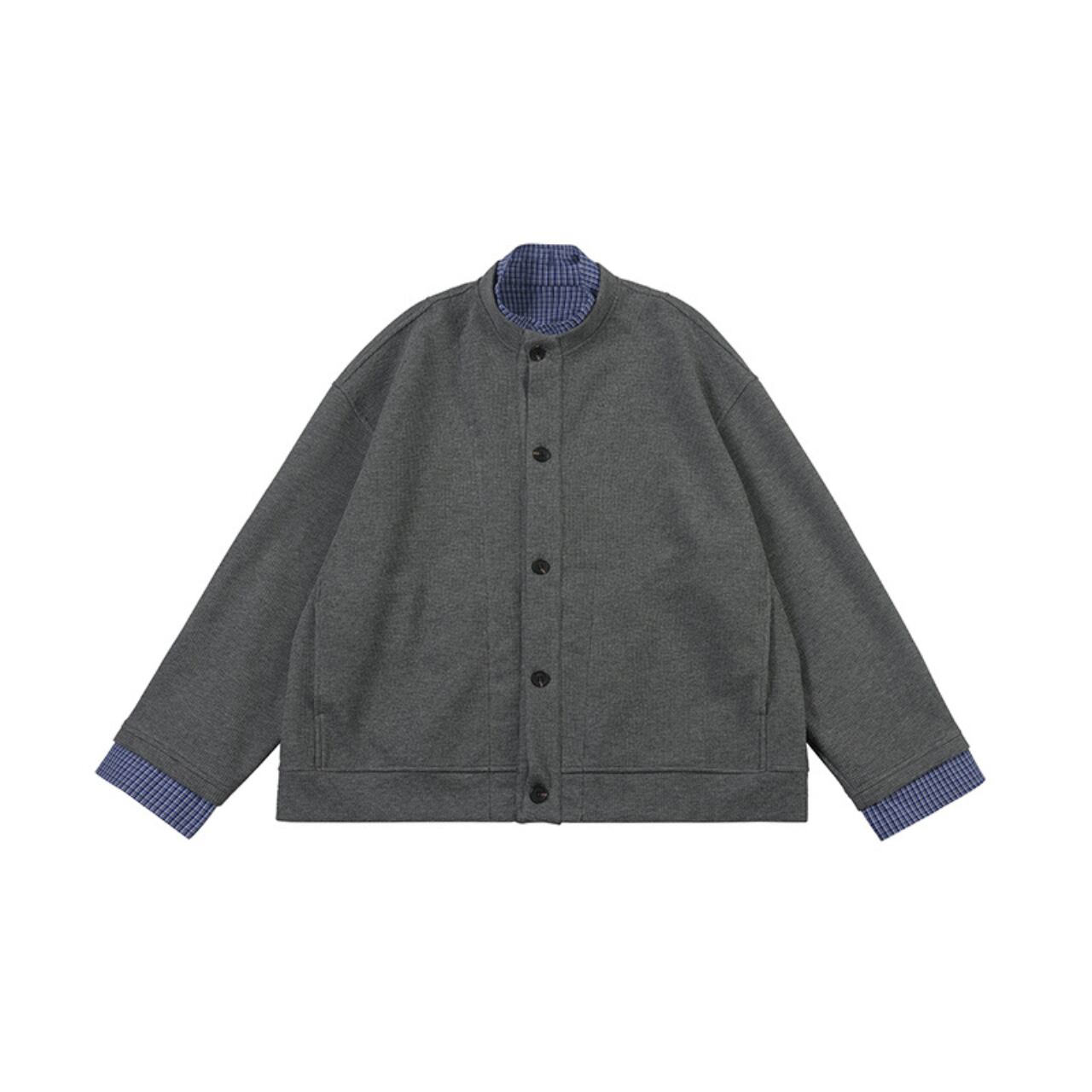 秋冬のレイヤードに重宝する、ノーカラー仕立てのカーディガン型ジャケット。表地は細かなヘリンボーン柄が織り込まれた上品な生地感。襟・袖裏にはギンガムチェックの切り替えをプラスし、遊び心を効かせたディテールも◎。シャツやタートルとの相性は抜群で、ジャケット感覚でもカーデ感覚でも使える、都会的なリラックスアウターです。