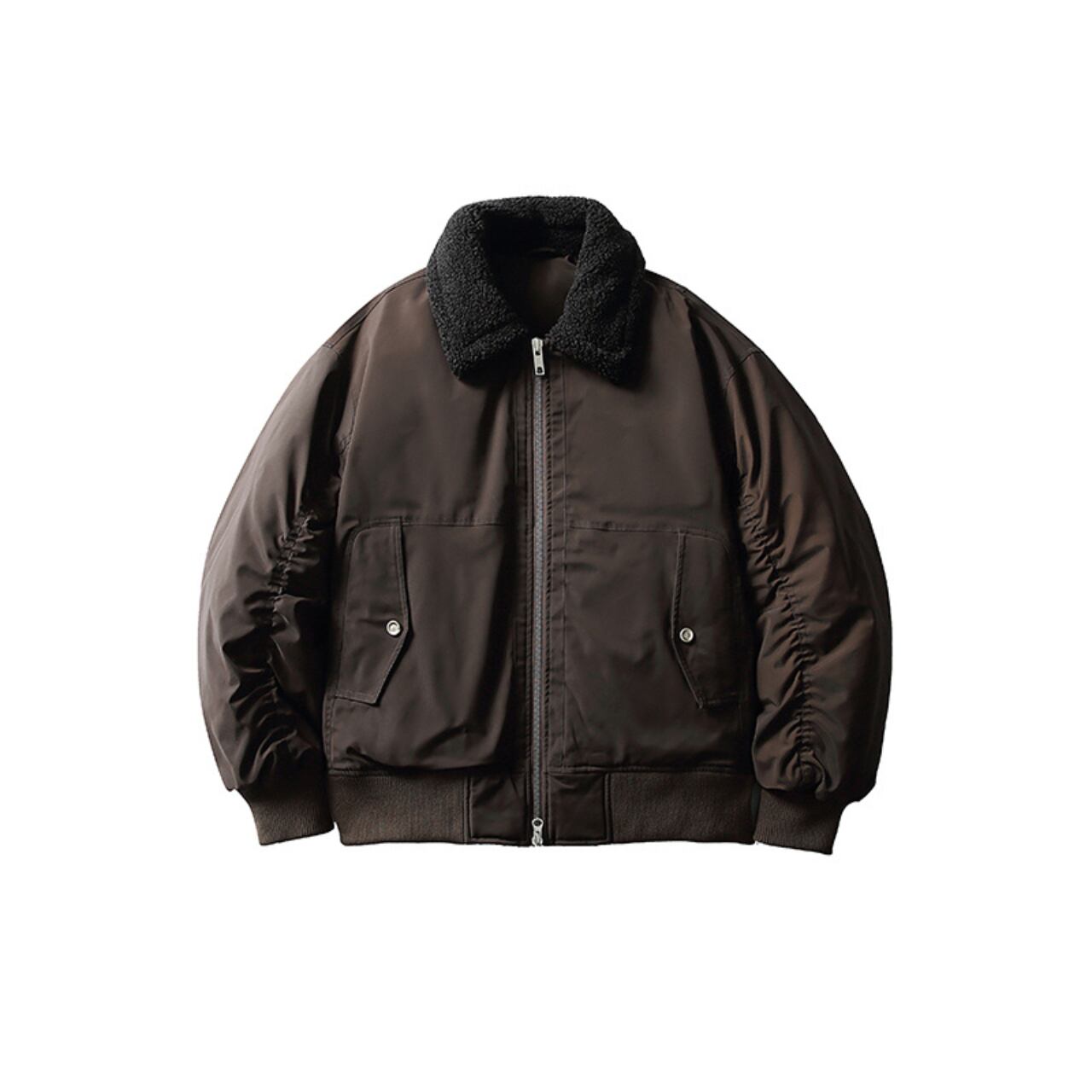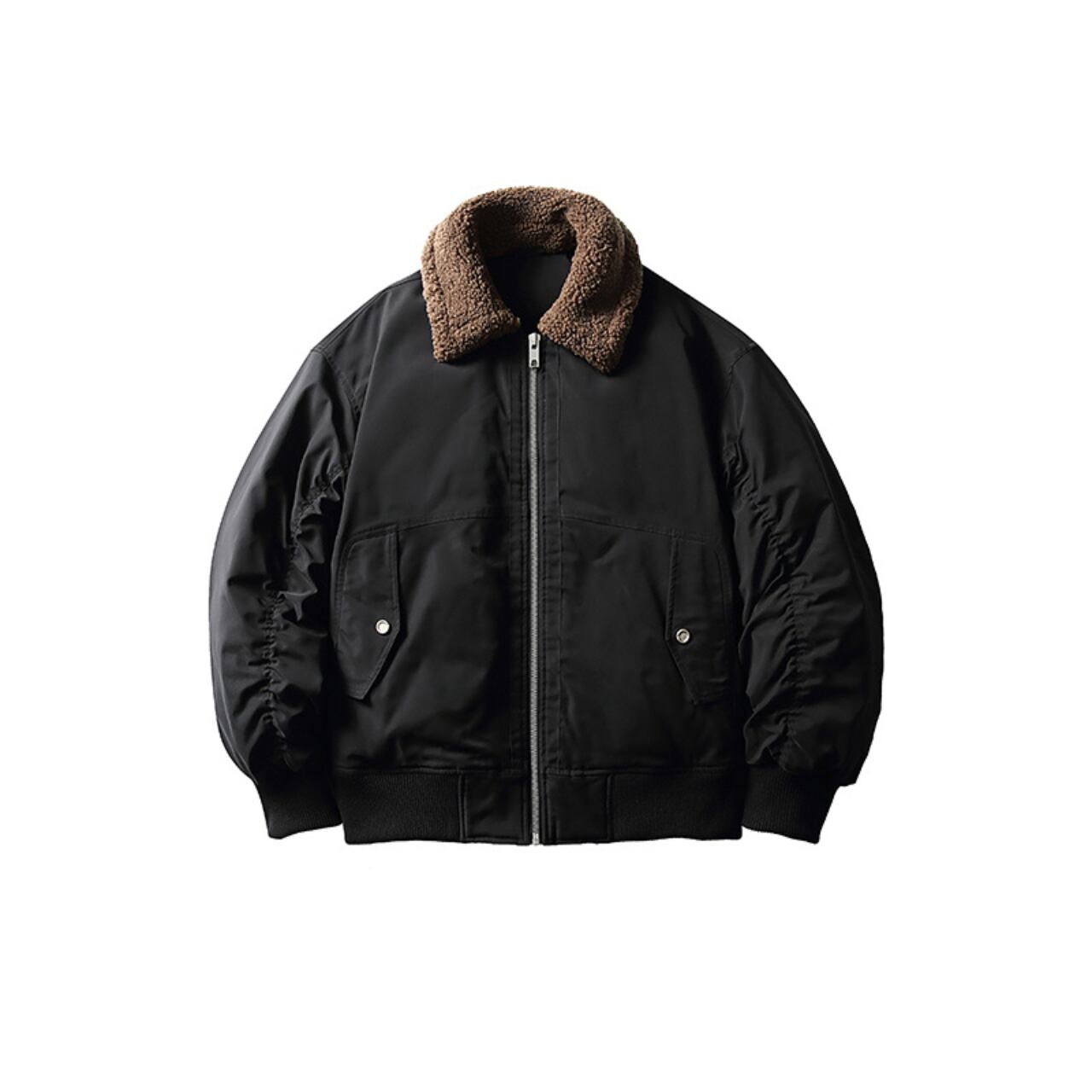 ミリタリーの機能性とストリートの洗練を融合した、秋冬の定番「ショートフライトジャケット」。コンパクトな丈感にたっぷりとした身幅で、シティボーイらしいバランスの良いシルエットを演出。立体的なラグランスリーブは動きやすさを確保しつつ、肩のラインを美しく魅せてくれます。ボリュームのあるボア襟は着こなしのアクセントに。裾と袖にはリブ仕様で防風性も◎。シャツにもスウェットにも相性がよく、着回し力抜群の一着です。