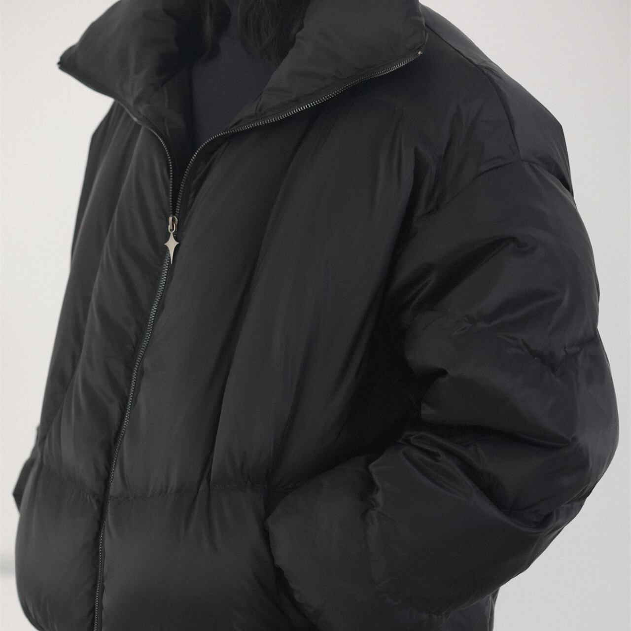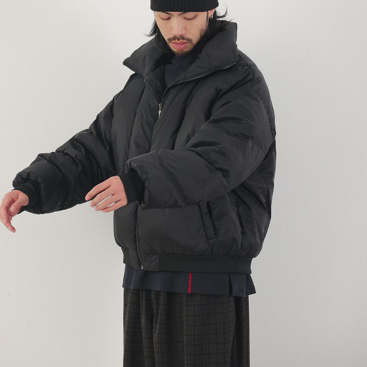 極寒の季節も頼れる存在感。ふんわりとしたボリュームと丸みのあるシルエットが特徴のパフジャケット。ハイネック仕様で首元までしっかり防寒しつつ、ジップを少し開けて抜け感を演出。ツヤを抑えたナイロン生地がミニマルで都会的な印象を与え、どんなスタイルにもマッチ。中綿入りのふっくらとしたボディで軽さと暖かさを両立。ストリートからモードまで、幅広く活躍する一枚です。