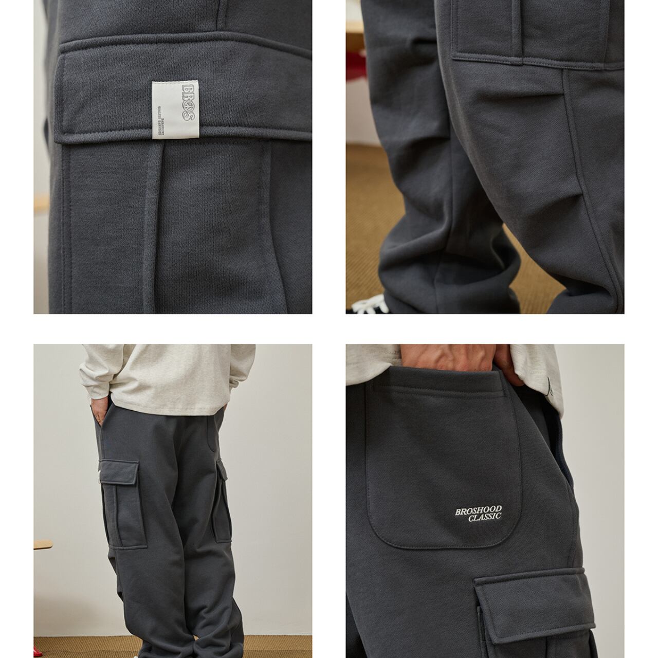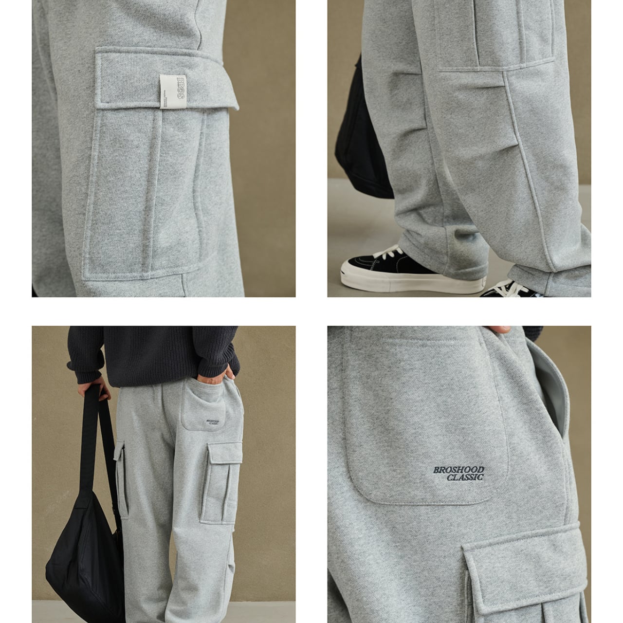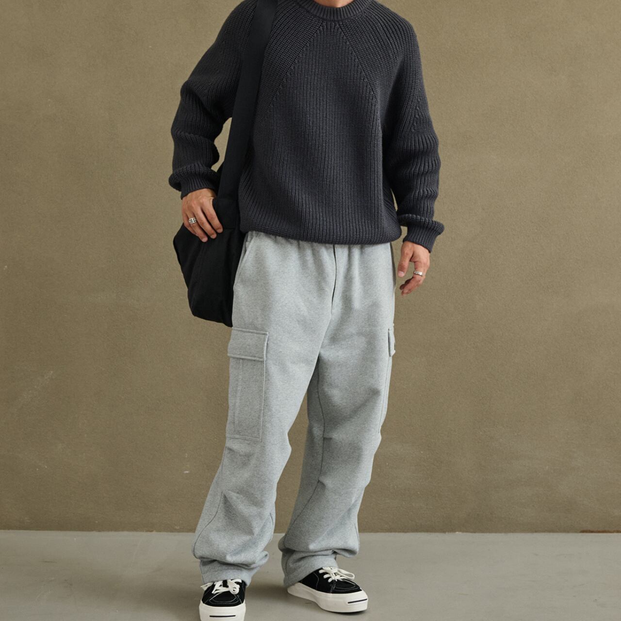 560gの極厚裏起毛スウェットを使用したこのカーゴパンツは、見た目以上の暖かさと安心感。両サイドのミリタリーポケットがアクセントになりつつも、野暮ったくならない絶妙なシルエットで、ラフに穿くだけでスタイリングが決まります。