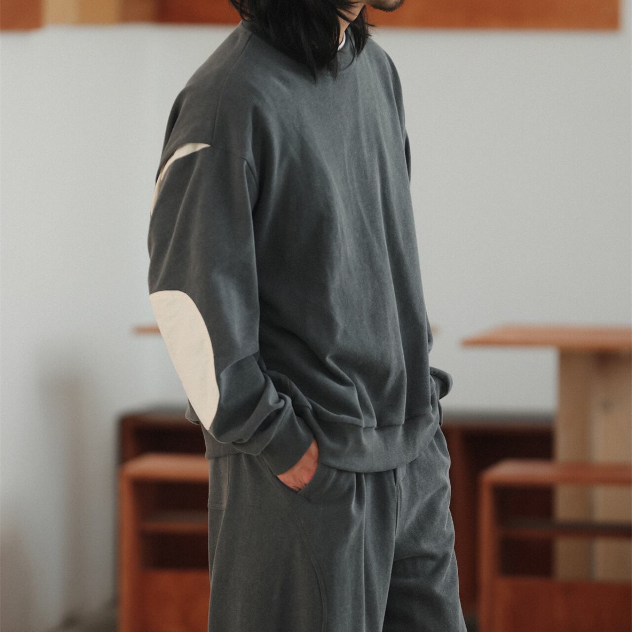 秋冬らしいニュートラルなカラーと、アイコニックな肘パッチデザインが印象的なルーズシルエットスウェット。ややフェード感のあるコットン100%のボディは、ソフトな肌触りと適度な厚みでリラックス感ある着心地を演出。カーゴパンツやワイドパンツと相性抜群で、タウンユースからラウンジスタイルまで幅広く対応可能。着こなし次第で“City Boy”にも“ミリタリーMIX”にもハマる万能アイテム。