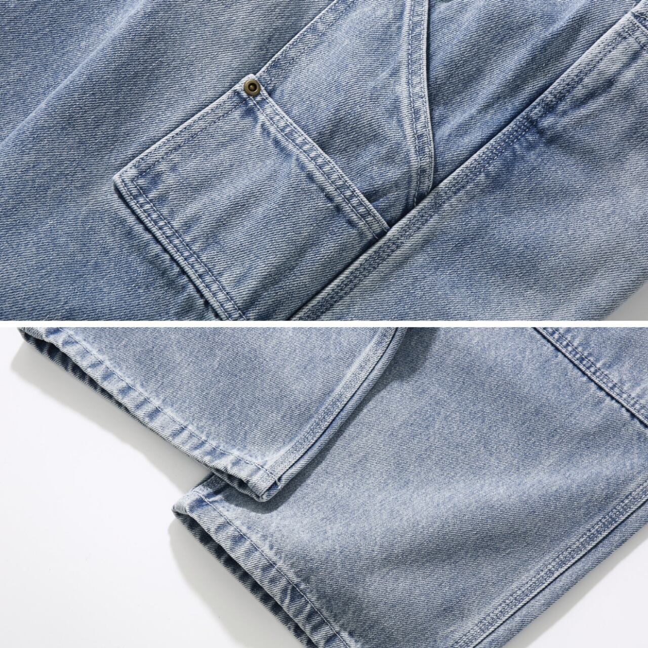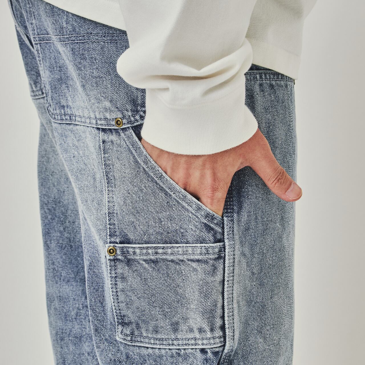 無骨な雰囲気を残しつつ、現代的にアップデートされたワイドシルエットのダブルニーデニムは、一本で“こなれ感”が出せる優秀アイテムです。しっかりと厚みのあるコットン生地、程よい色落ち加工、ツールポケットやステッチワークといった本格ディテールも抜かりなし。