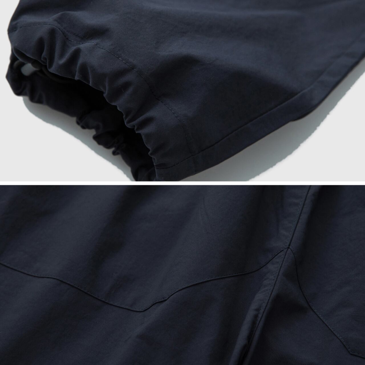 100%ポリエステル素材を使用し、軽量ながらも適度なハリがあり、シワになりにくく速乾性も◎。ウエストはゴム+ドローコード仕様で履き心地はイージー、なのに見た目はスタイリッシュ。デイリーにはもちろん、キャンプや軽登山、フェスにも活躍する一本です。