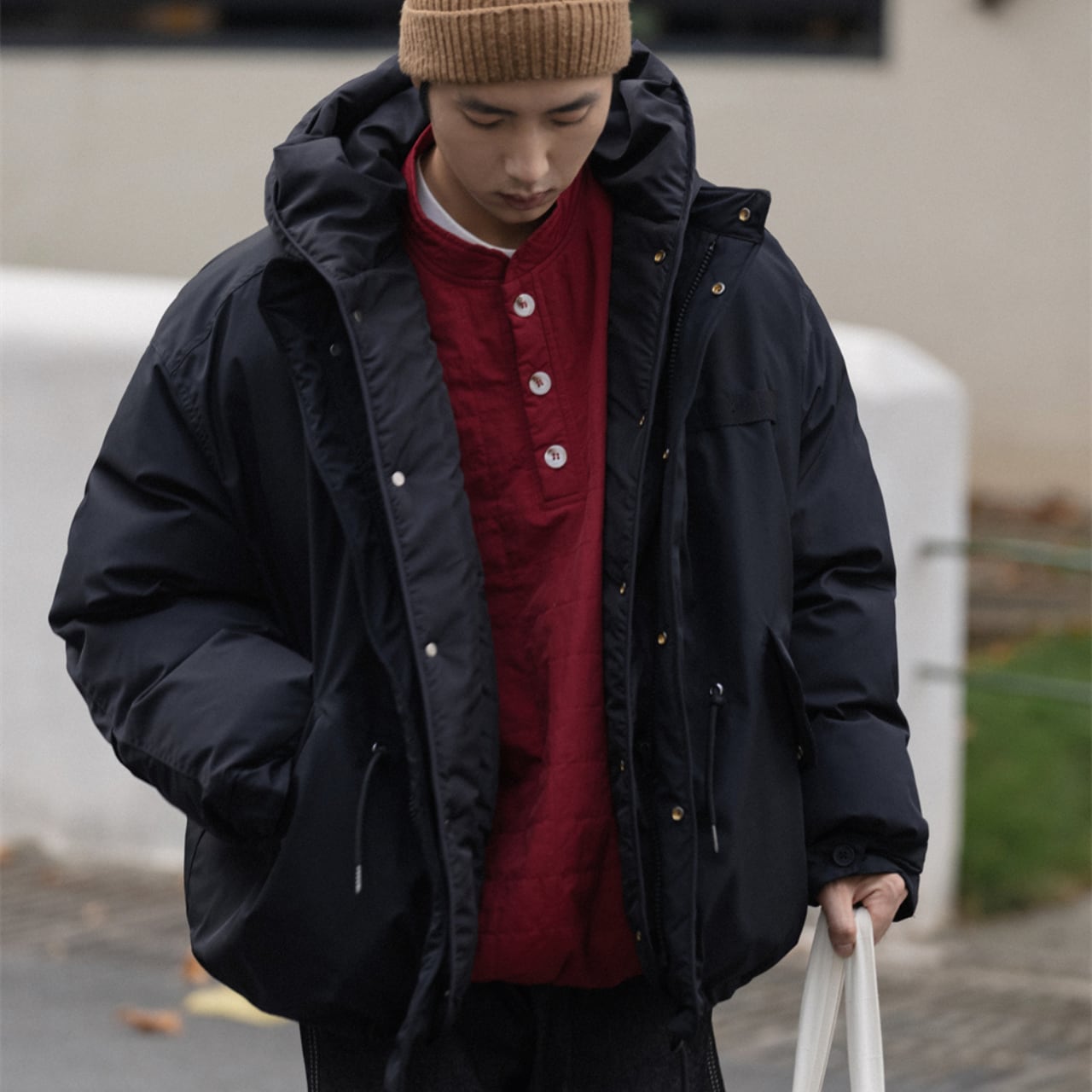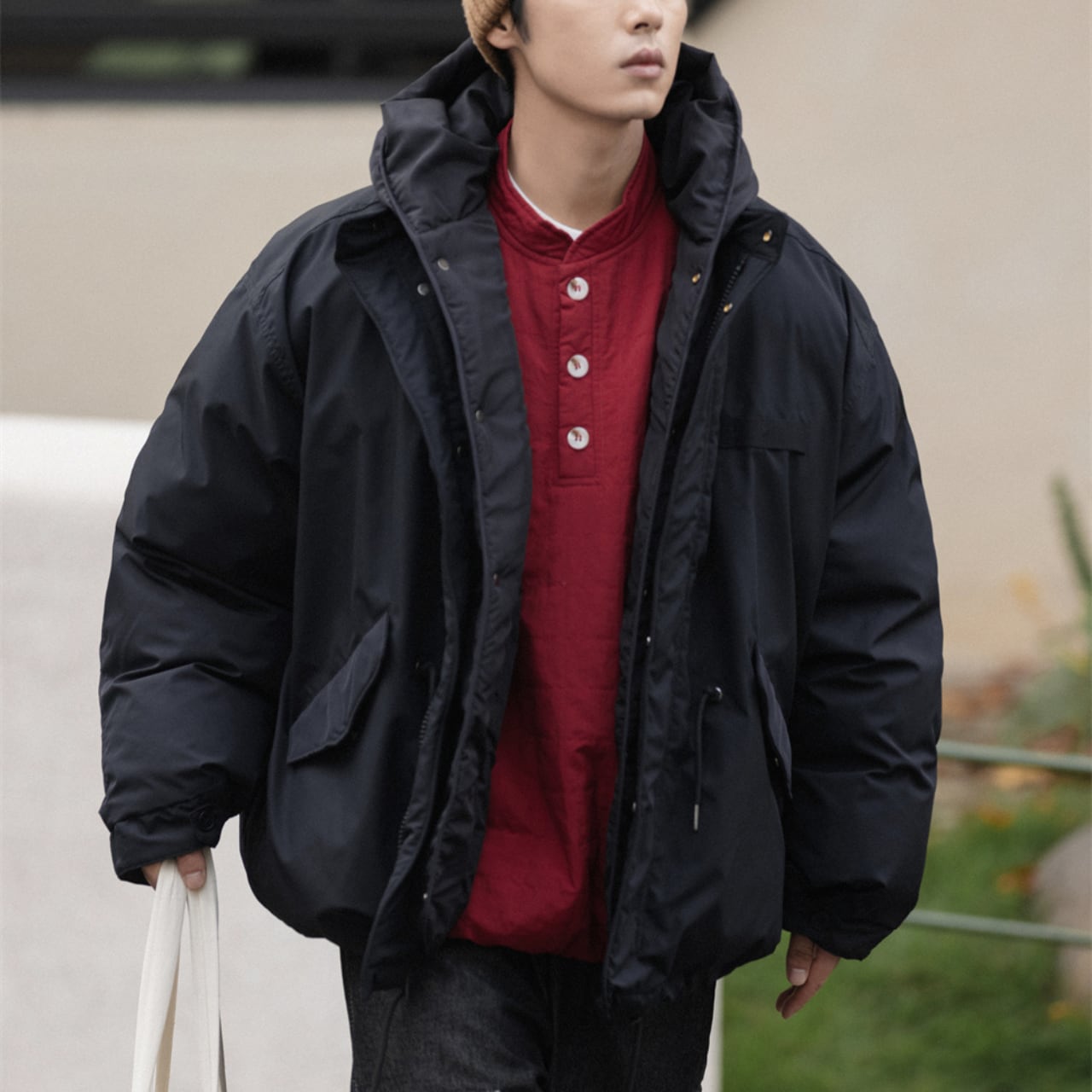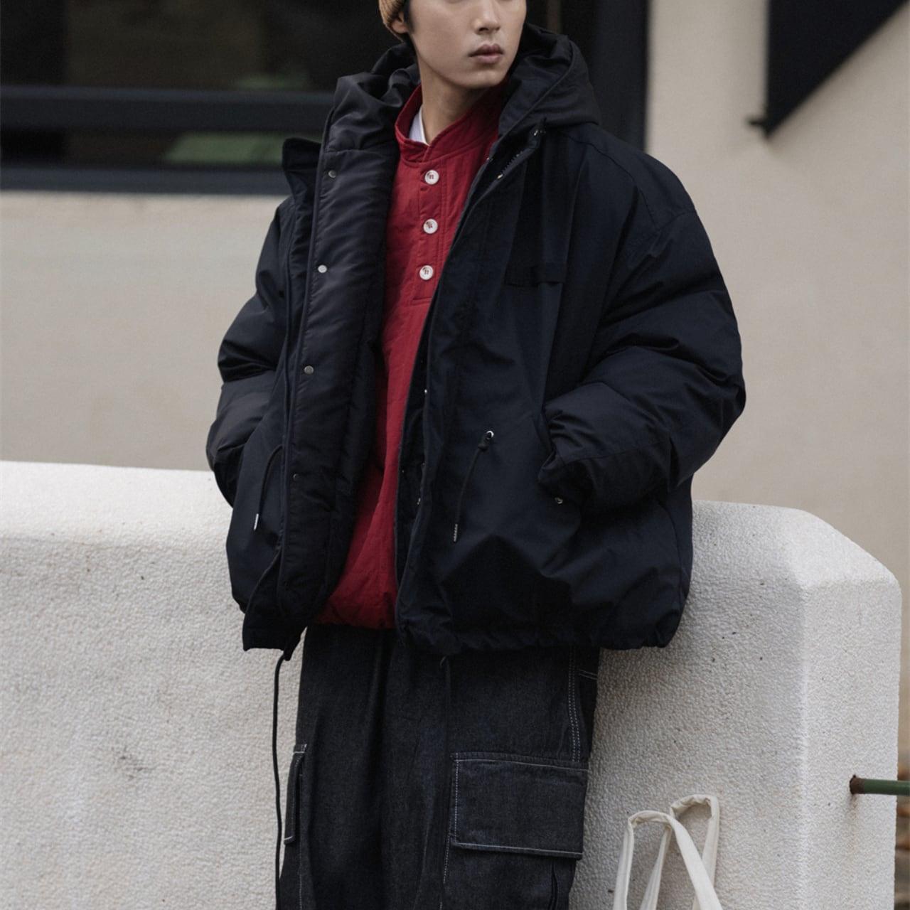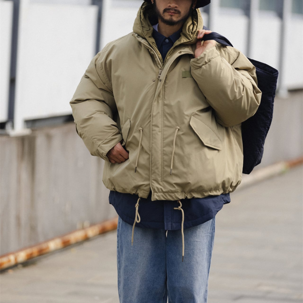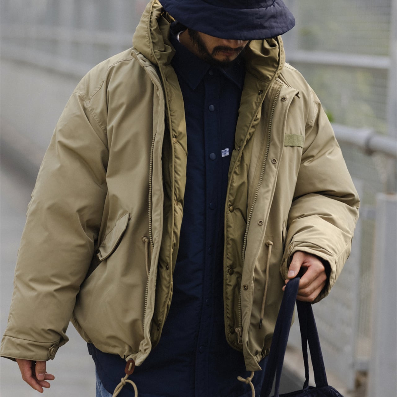 #gate #cityboyootd #オーバーサイズジャケット #レイヤードコーデ #冬アウター #立ち襟フード #ドロストジャケット #2023aw #シティアウトドア #downstyle